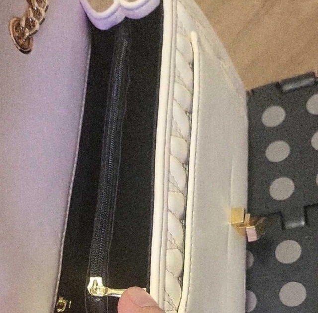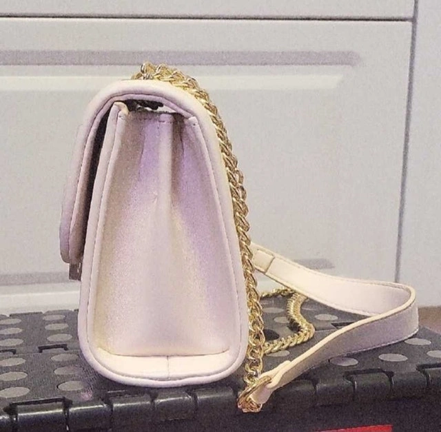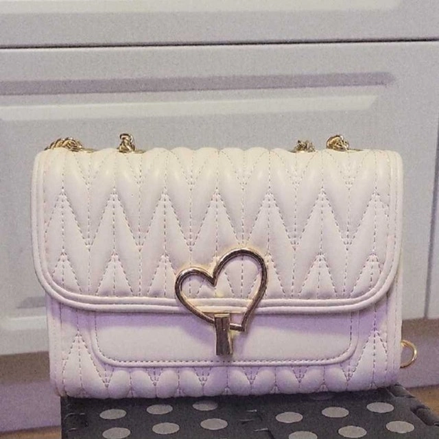This chic white quilted purse is the perfect accessory to elevate your style, featuring a distinctive heart-shaped closure and a sleek gold chain strap. As shown in the pictures, the purse is in used but good condition, ready to add a touch of elegance to your ensemble. Specifications: * Colour: White * Style: Quilted with gold chain * Closure: Heart-shaped twist lock. Cash accepted.