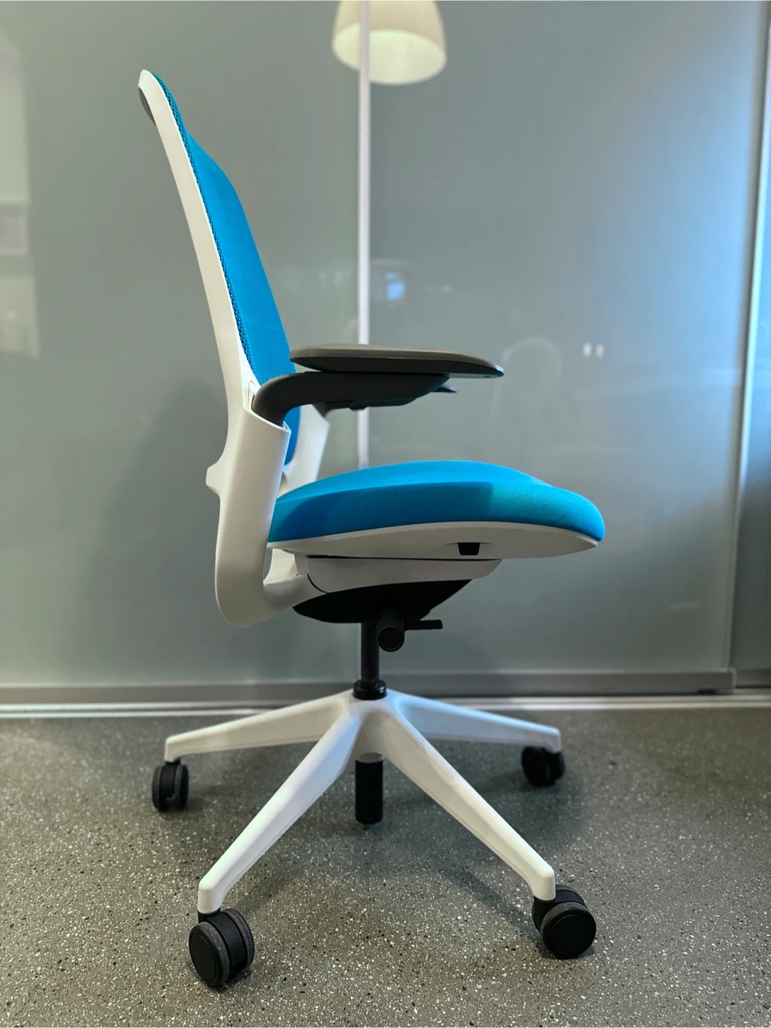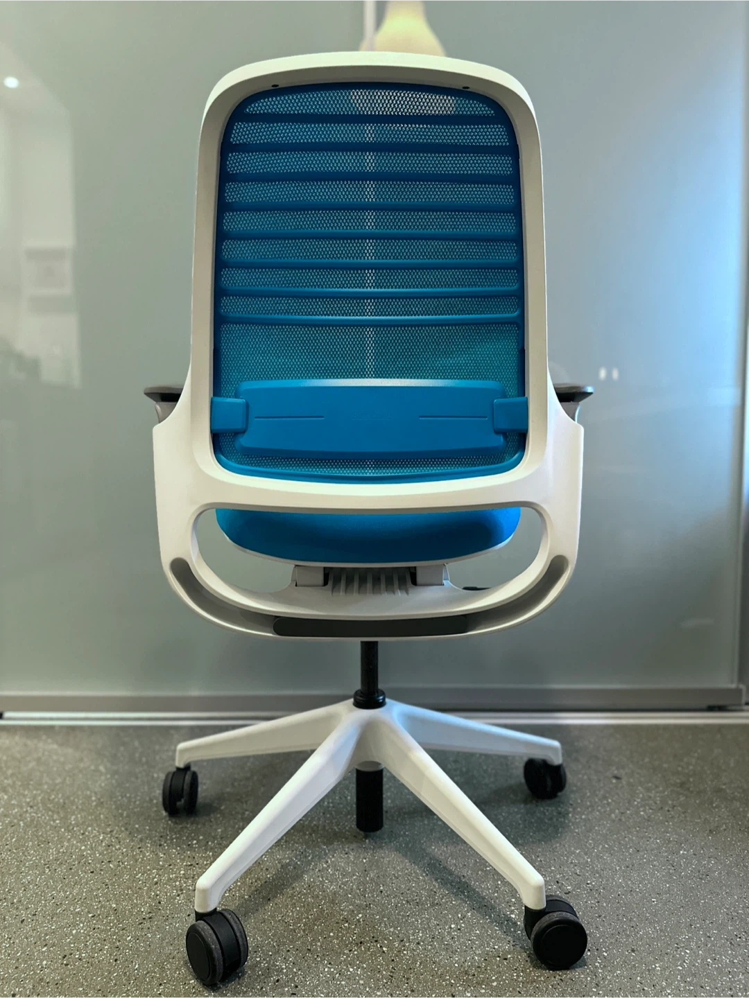The Steelcase Series 1 retails new for $600+, and this one has limited edition cyan upholstery (rare color combo and looks great in person).