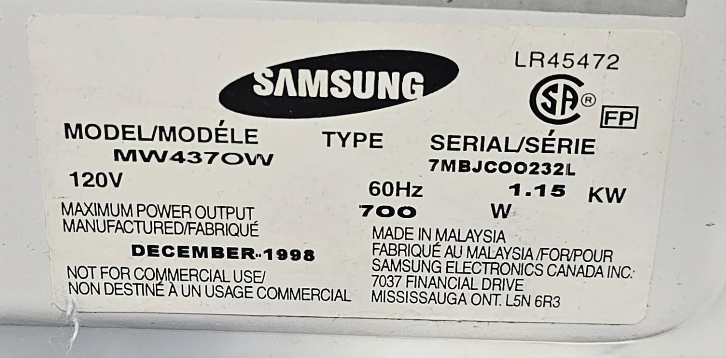 Buy & SellSamsung MW437OW Microwave OvenSamsung MW437OW Microwave Oven$17White Samsung microwave oven, model MW437OW. It's 700W with 120V power. Manufactured in December 1998.BrandSamsungWHERE TO MEETHouseView MapSELLER571839Mackie Park100 reviews2 chats·0 favorites·32 viewsSEND CHAT TO SELLERHi 571839! I’m interested in your listing.Hi 571839! I’m interested in your listing.Get the Karrot app to chatSign In to chat