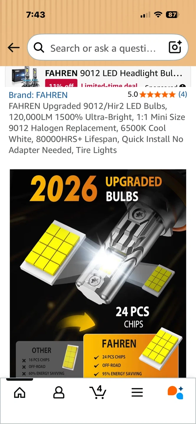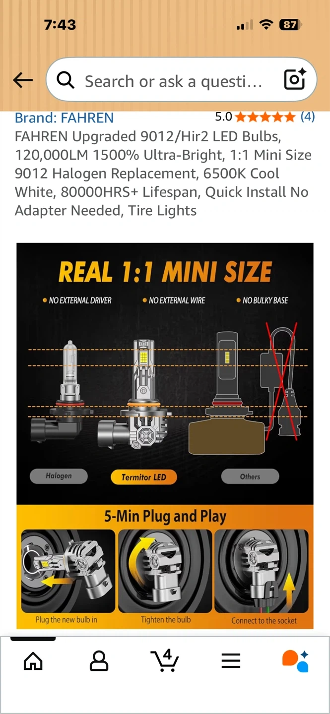 These FAHREN LED bulbs are an upgraded 9012/Hir2 model with 120,000LM ultra-bright output. They're a 1:1 mini size, designed for a 6500K cool white light and a quick install. They boast an 80,000+ hour lifespan.