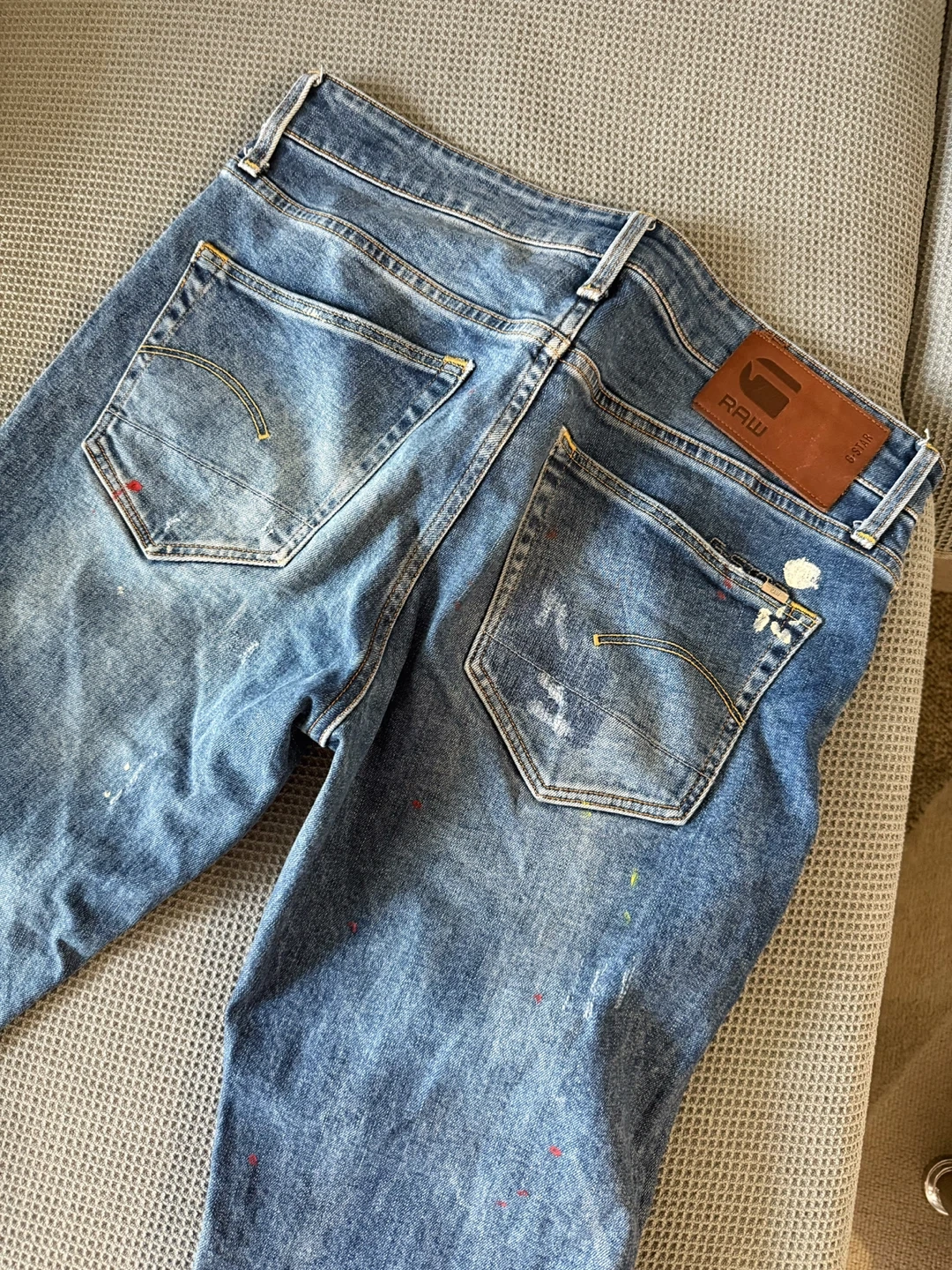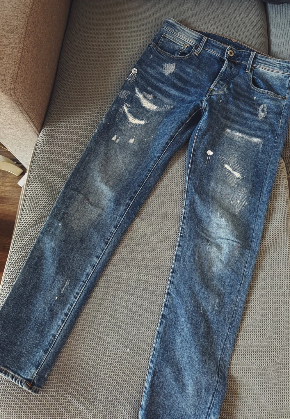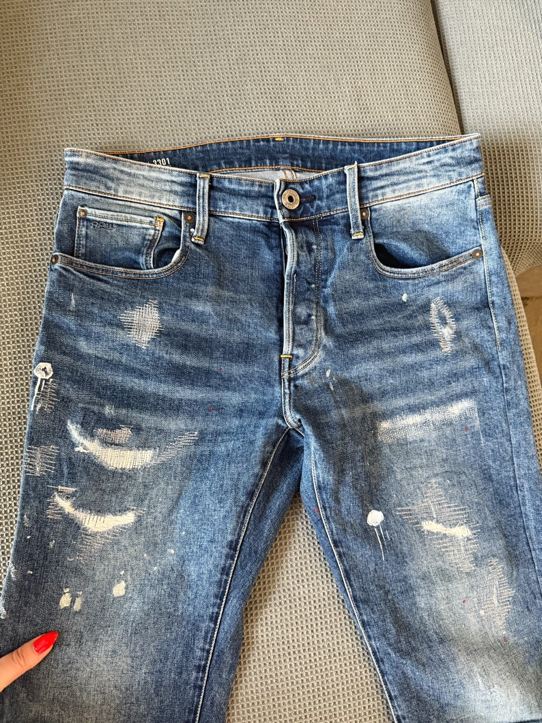 💎 Original G-Star RAW jeans, 3301 Slim model with subtle worn details and designer accents. Stylish and modern, suitable for both everyday outfits and casual occasions.