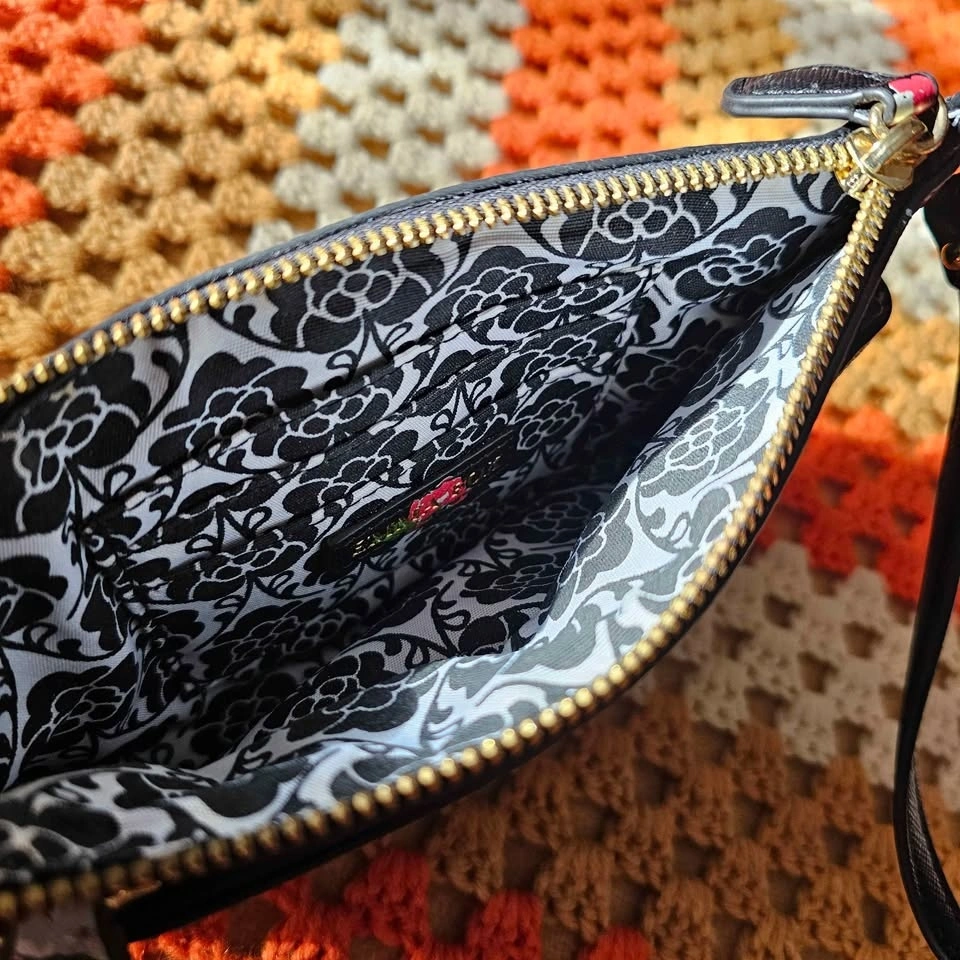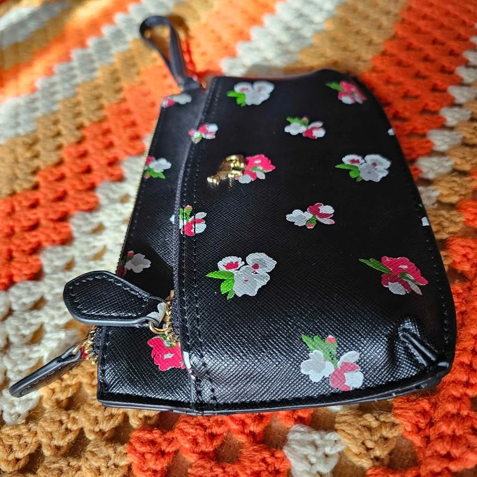 Emma Fox Floral Black Faux Leather Wristlet Clutch Bag