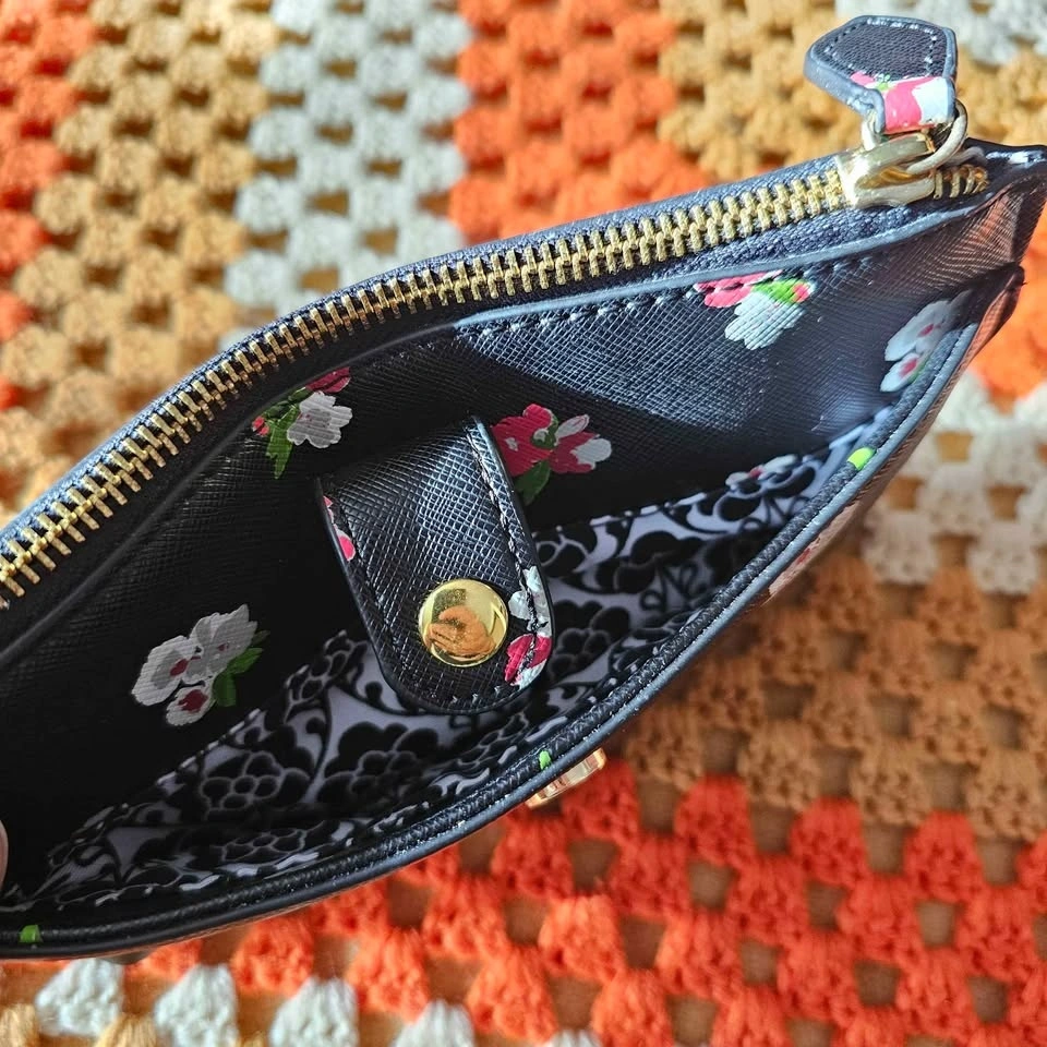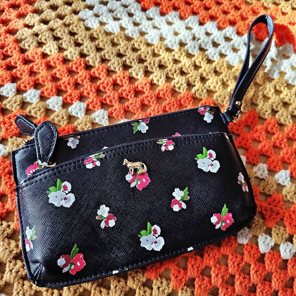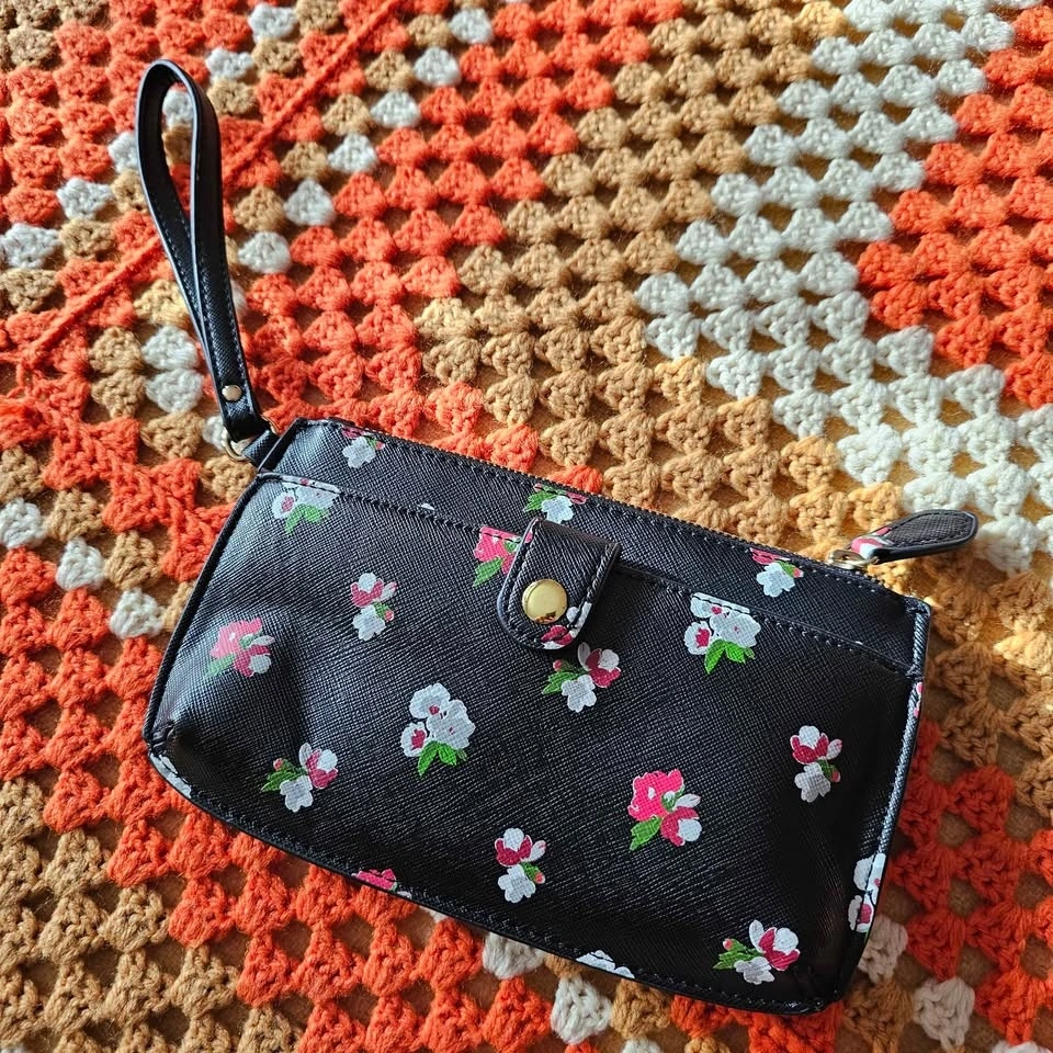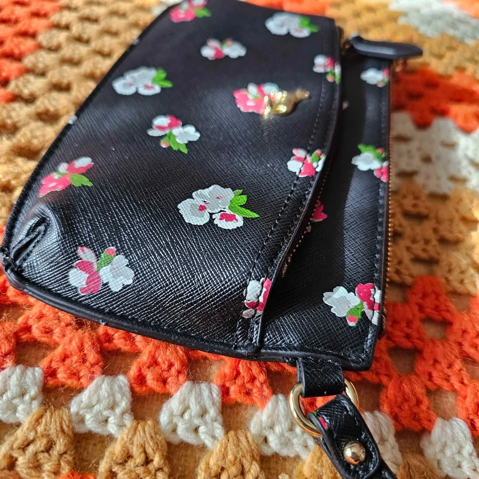 Emma Fox Floral Black Faux Leather Wristlet Clutch Bag