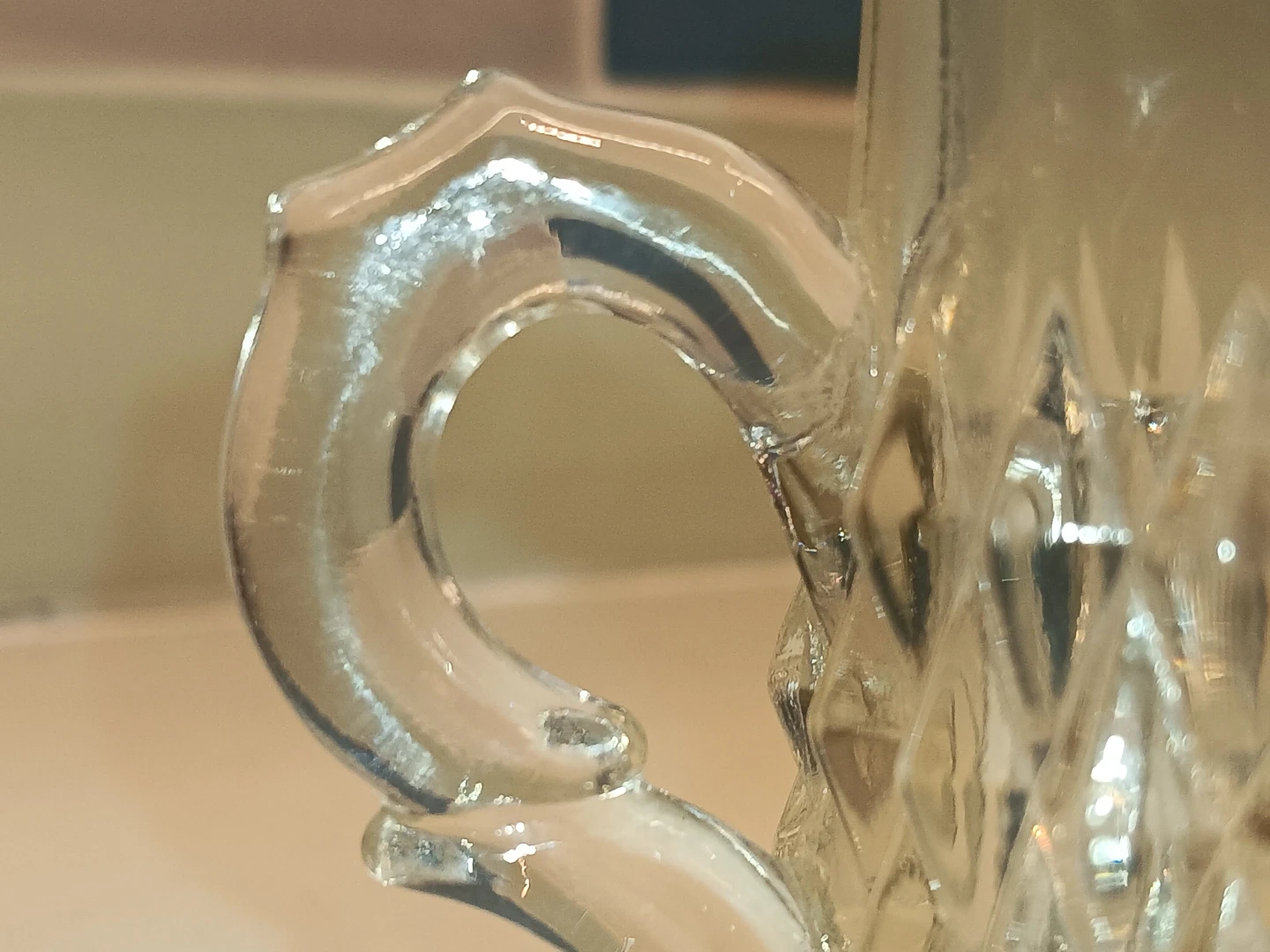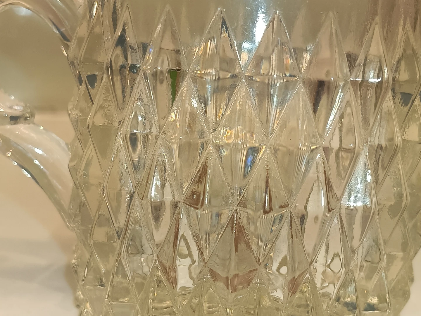 Selling a vintage Indiana Glass Diamond Point clear pressed glass miniature creamer and Vintage Colony Park Lane Goblet. Perfect for adding a touch of elegance to your table setting! Gift box and ribbon included.
