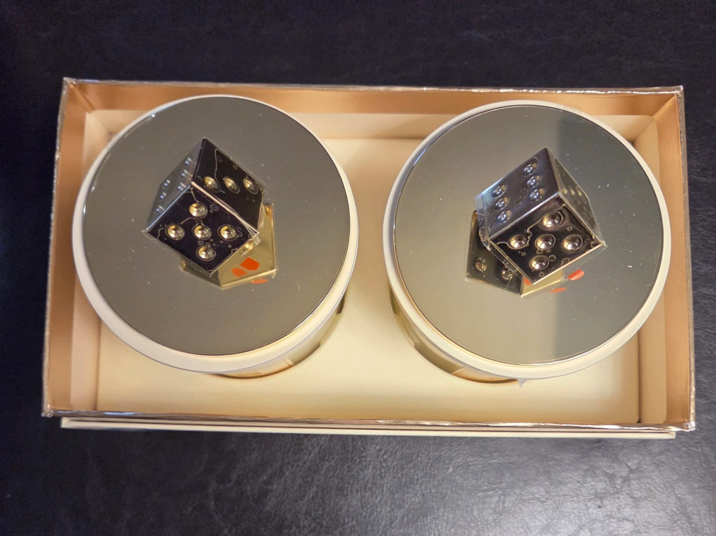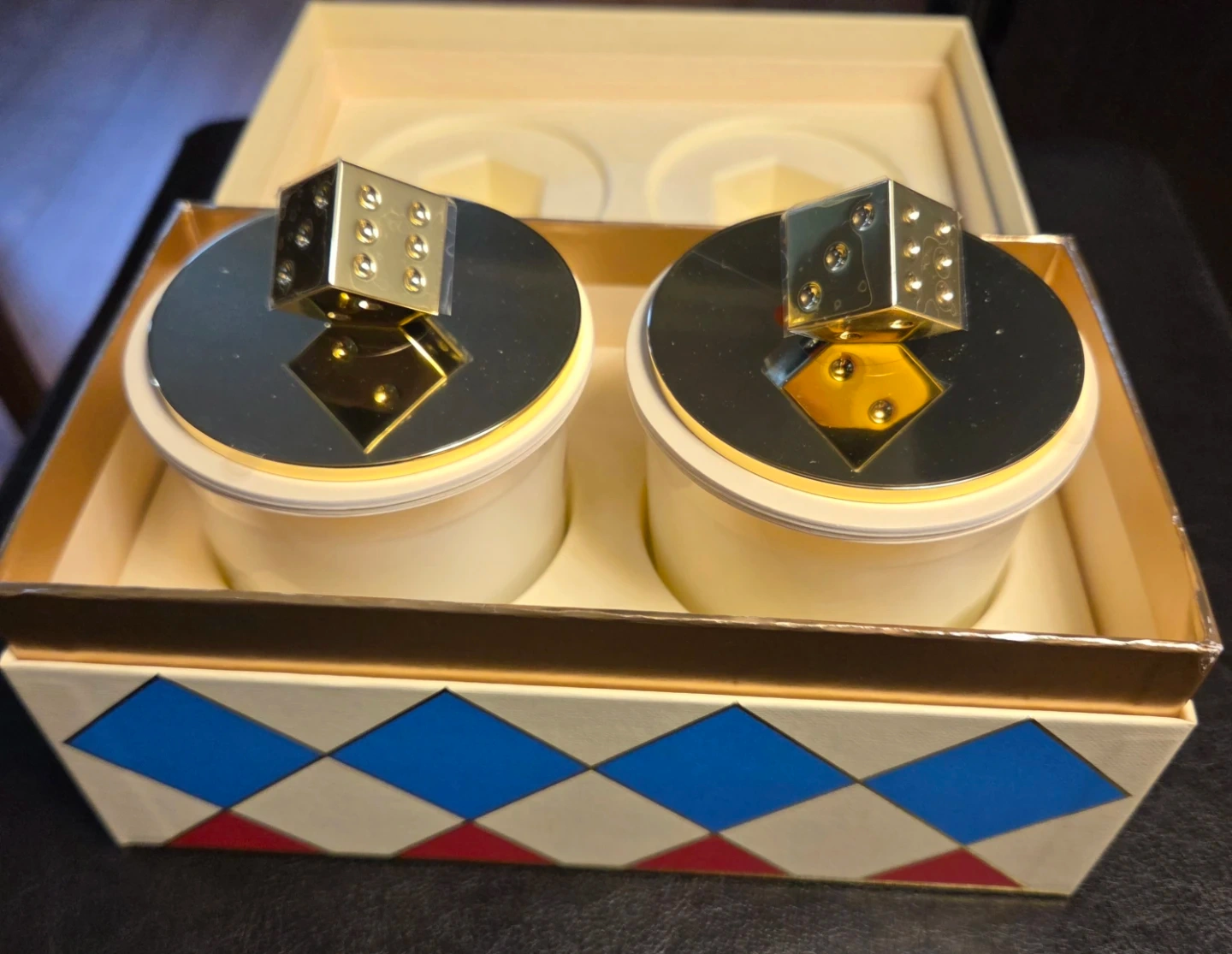Jo Malone London Decorative Duo Scented Candles. Each candle features a unique dice-shaped lid for a decorative touch.