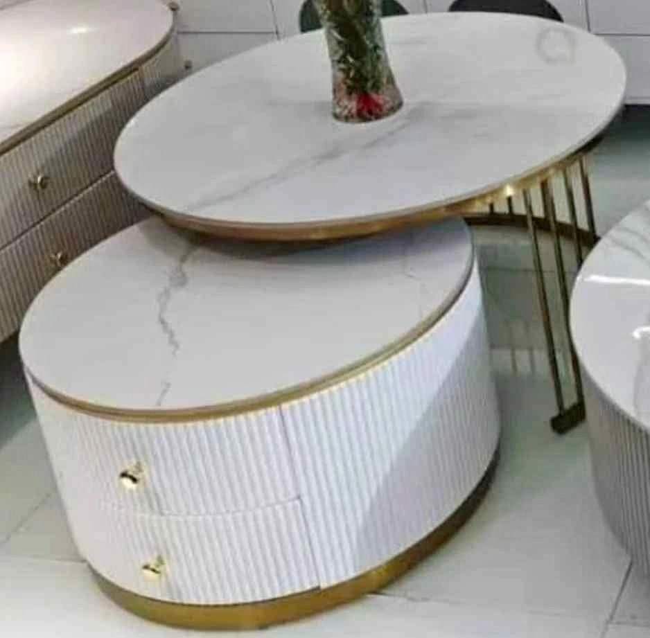 Luxury Nesting Coffee Table - White/Gold Marble