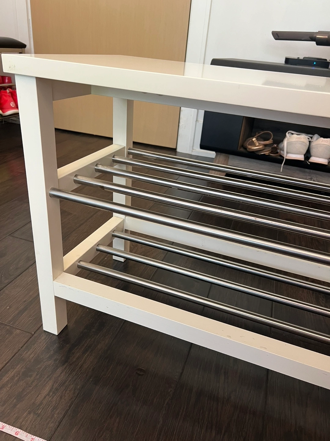 Selling a white IKEA TJUSIG bench with shoe storage! It's in great condition and perfect for organizing your entryway or closet.