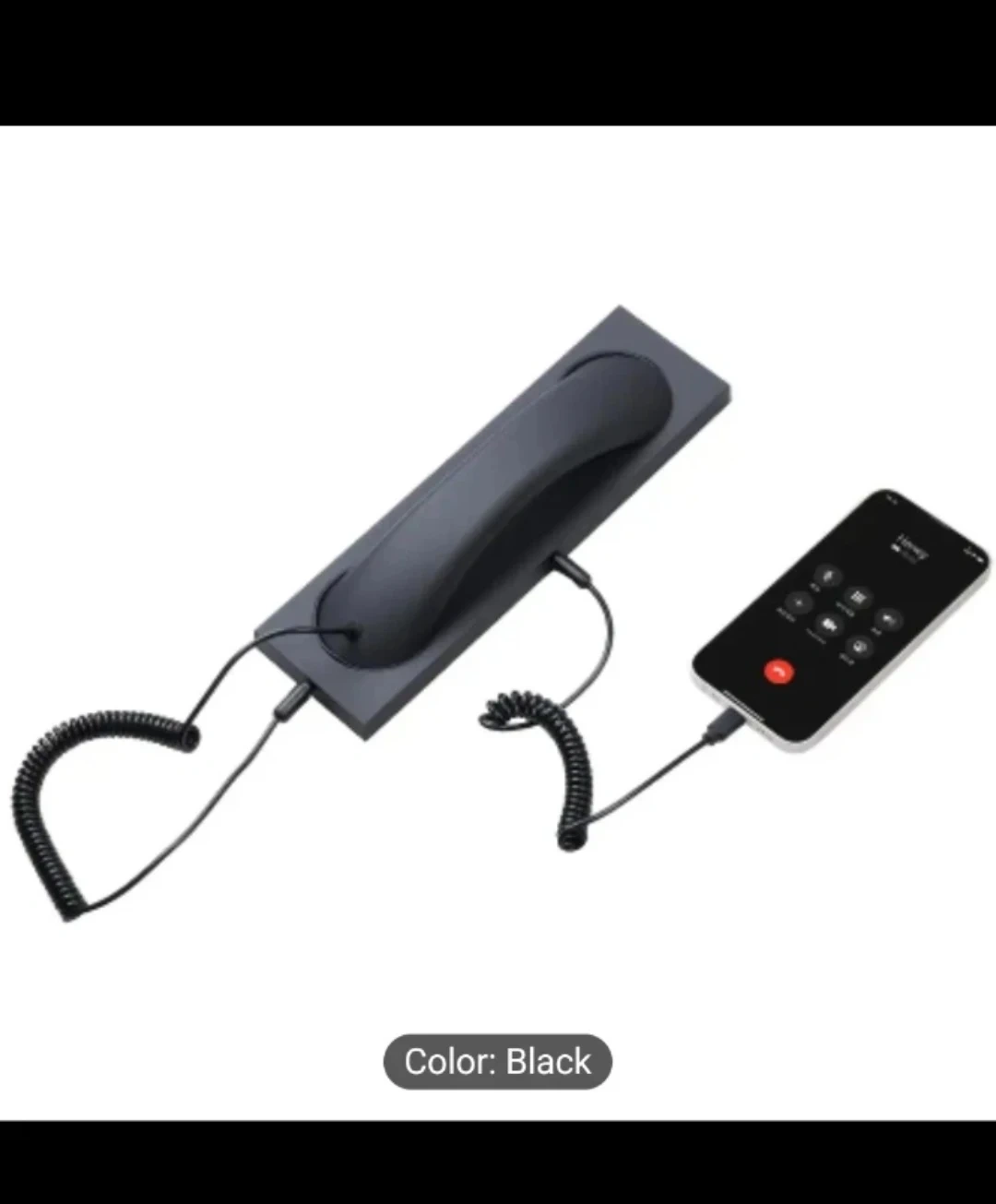 Connect this handset to your smartphone for a classic calling experience. It's black and comes with all necessary cables. This device offers a comfortable way to take calls.