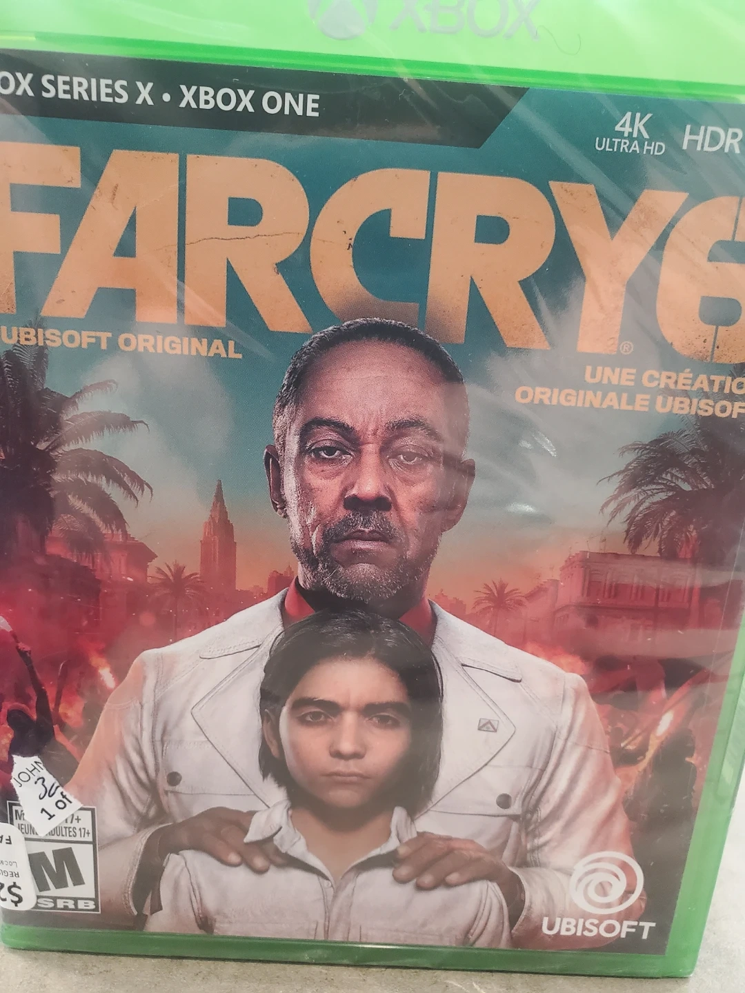 This is the Far Cry 6 video game for Xbox Series X and Xbox One. It supports 4K Ultra HD and HDR. Rated M for Mature 17+.