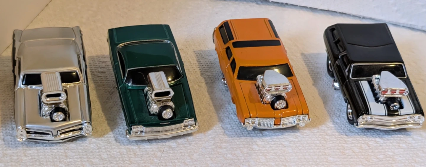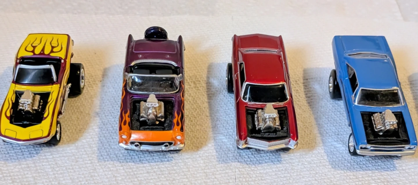 Key Features: This specific series is known for its "blown" engines with oversized chrome blowers and air intakes protruding from the hood, along with larger-than-scale rear wheels.