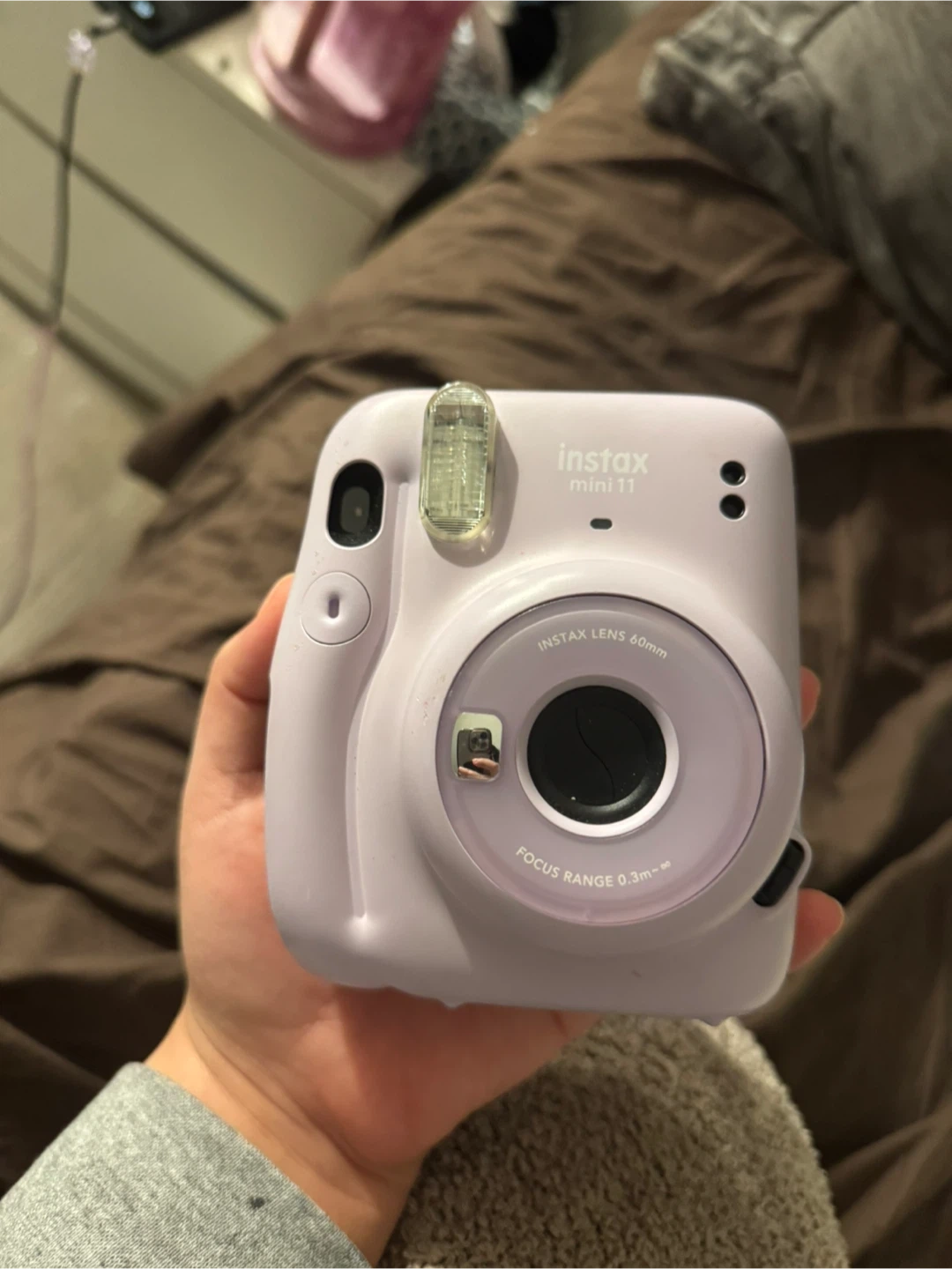 Capture memories with this Fujifilm Instax Mini 11 instant camera. It's a fun way to snap and print photos on the go. Features a 60mm Instax lens. Had this for a while extremely minor scratches and the battery cover is missing but I tested it out and it’s in perfect condition