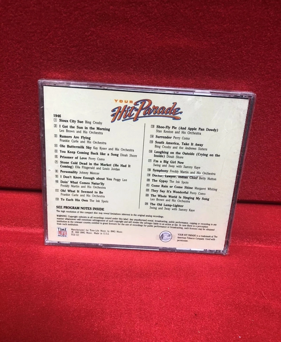 New 1946 Your Hit Parade Double-Length CD equivalent to 2 LPs. Music notes enclosed. Features various artists and songs from 1946. $5