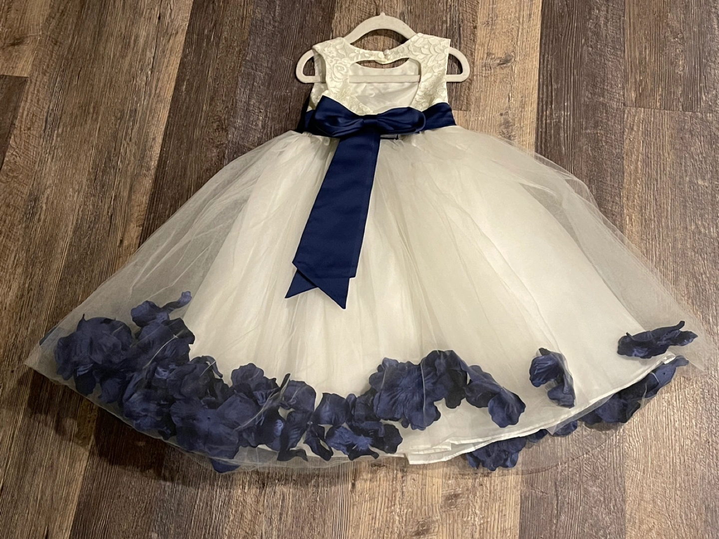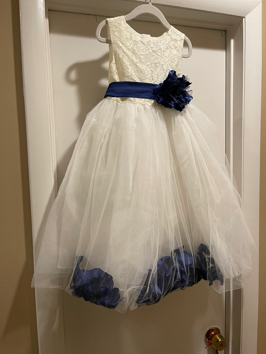 White and Blue Flower Girl Dress Size 5