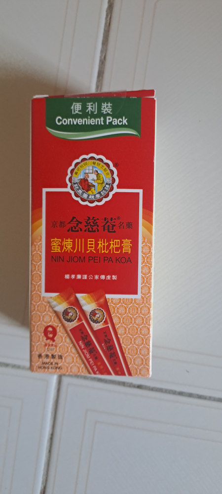 Selling a convenient pack of Nin Jiom Pei Pa Koa! It's made in Hong Kong and comes in a convenient pack.
