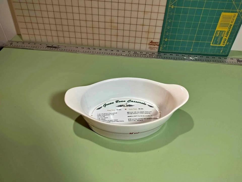 Collectors item Campbell's baking dish with recipe in the enamel. Can be used to bake as well. Feel free to message if you have any questions!