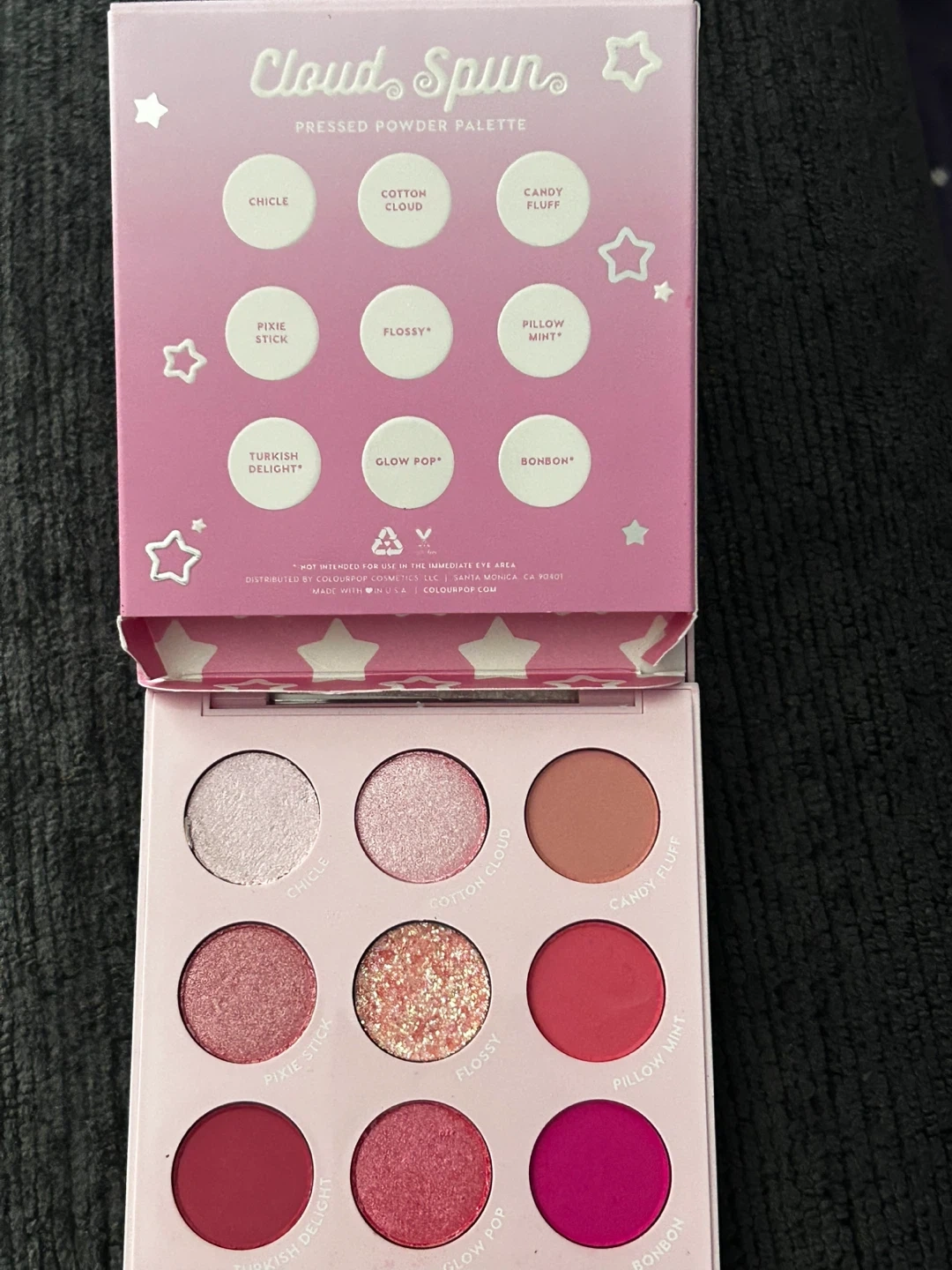 This is the ColourPop Cloud Spun Pressed Powder Palette. It contains nine shades of pressed powder eyeshadows.
