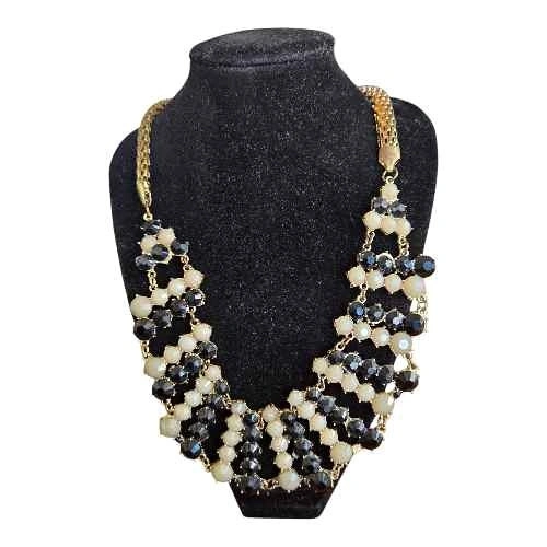 Vintage Gold Tone Statement Collar Necklace - Black & Ivory Bead