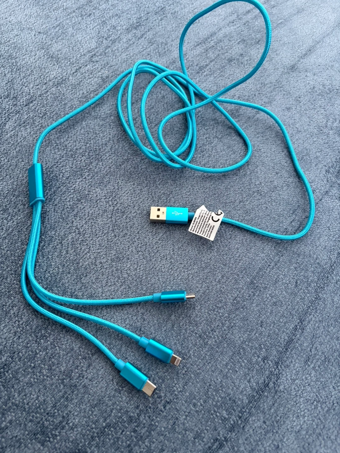 This is a handy 3-in-1 charging cable, perfect for keeping all your devices powered up. It comes with USB-C, Lightning, and Micro USB connectors all in one braided cord. This cable is great for travel or for reducing clutter by consolidating multiple chargers into one. The braided exterior makes it durable! 6 ft long !