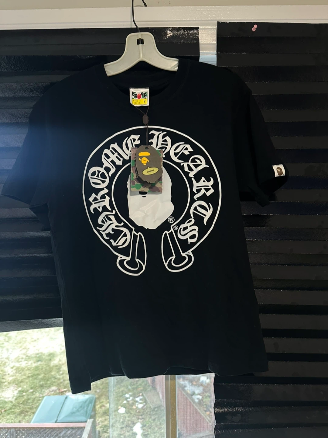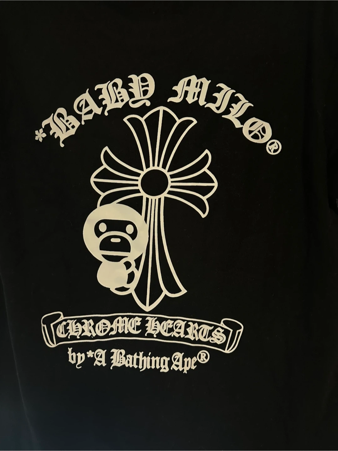 Buy & SellBAPE x Chrome Hearts T-ShirtBAPE x Chrome Hearts T-Shirt$90Black BAPE t-shirt with Chrome Hearts graphic. Made in Japan. Size Medium.ConditionNewSizeM / LBrandBAPEWHERE TO MEETCheck LocationView MapSELLERArielBeacon Hill150 reviews0 chats·0 favorites·5 viewsSEND CHAT TO SELLERHi Ariel! I’m interested in your listing.Hi Ariel! I’m interested in your listing.Get the Karrot app to chatSign In to chat