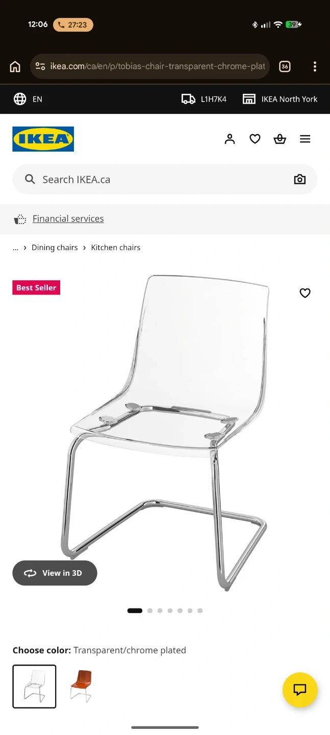 Glass Dining Table with 4 Ikea Tobias Chairs
