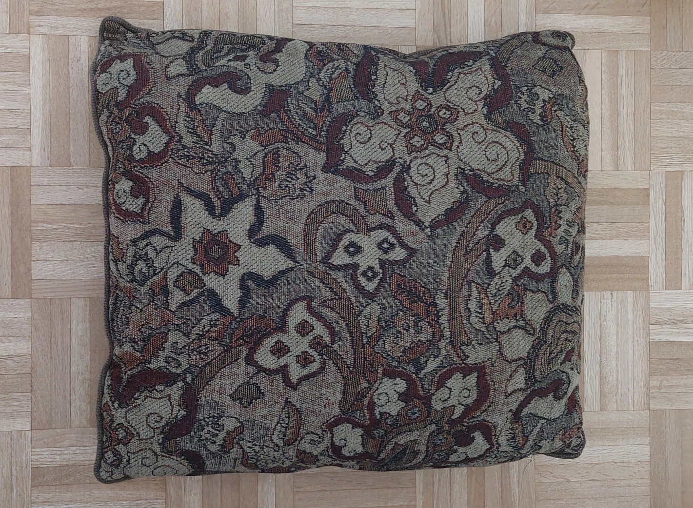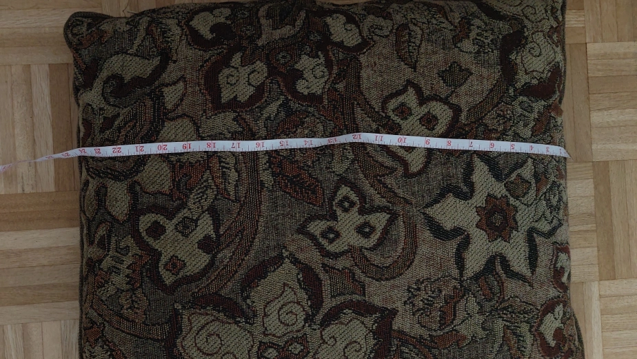 A beautiful floral patterned throw pillow! It measures approximately 22 inches across, perfect for adding a touch of cozy charm to your living space