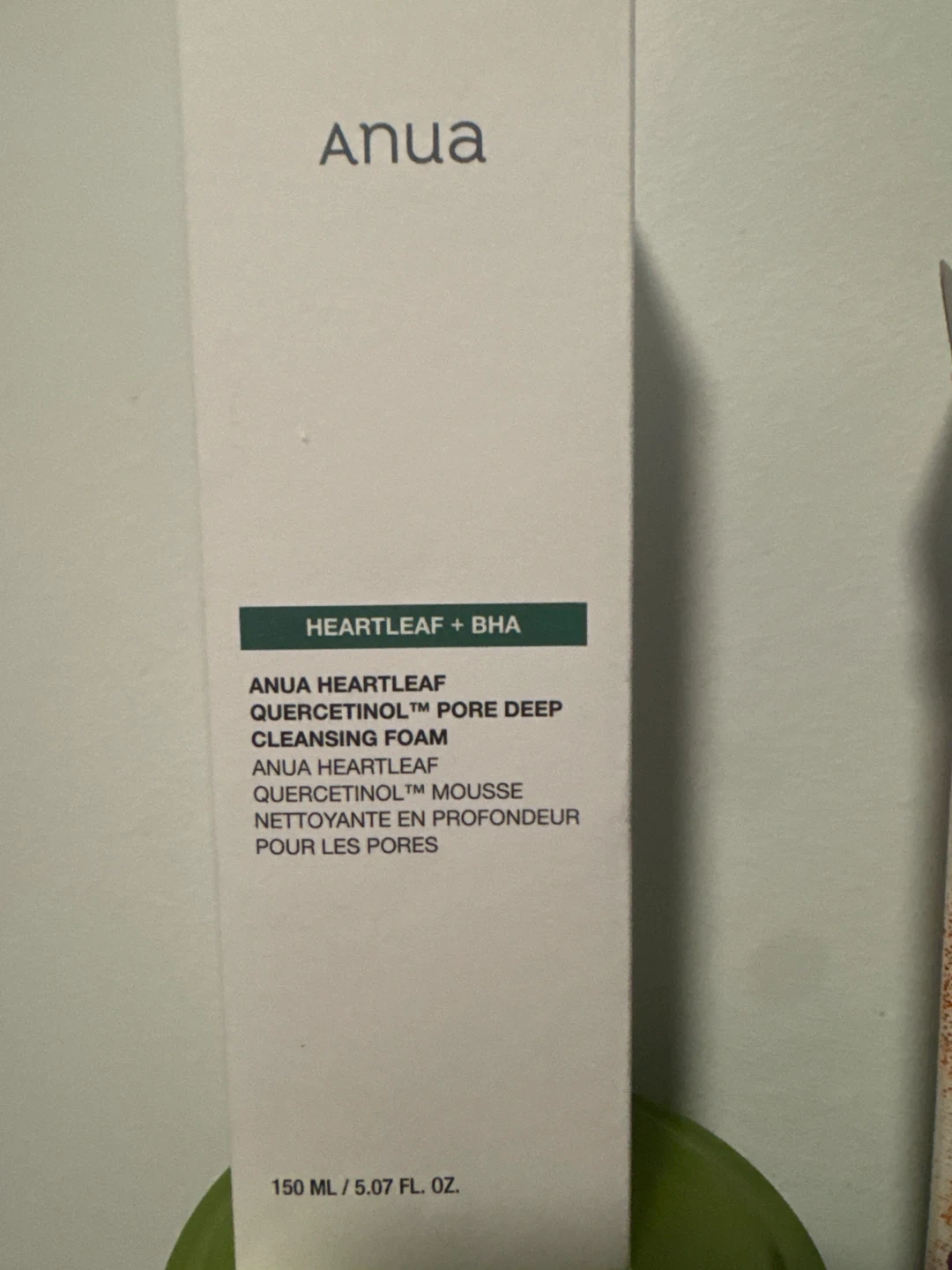 Anua Heartleaf Quercetinol Pore Deep Cleansing Foam. Contains Heartleaf and BHA. 150 ml / 5.07 fl. oz. This cleansing foam is great for deeply cleansing pores!