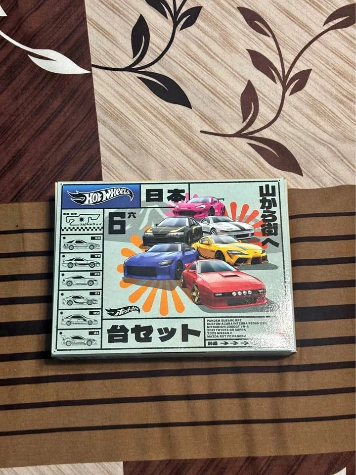 Brand new Hot Wheels 6-car set in original themed box. Includes Pandem Subaru BRZ, Custom Acura Integra Sedan GSR, Mitsubishi 3000GT VR-4, 2021 Toyota GR Supra, 2023 Nissan Z, and Mazda RX7 FC Pandem. Cars are 1:64 scale with detailed paint and wheels. Box is in great shape with Japanese-inspired artwork. Brand new and has not been opened. Pickup only.