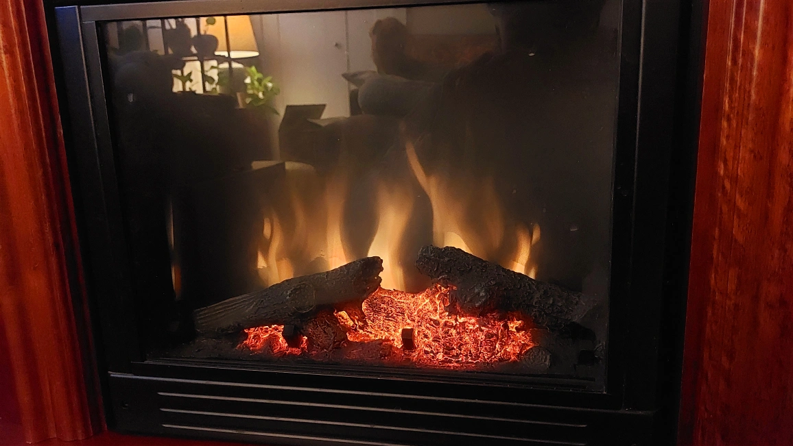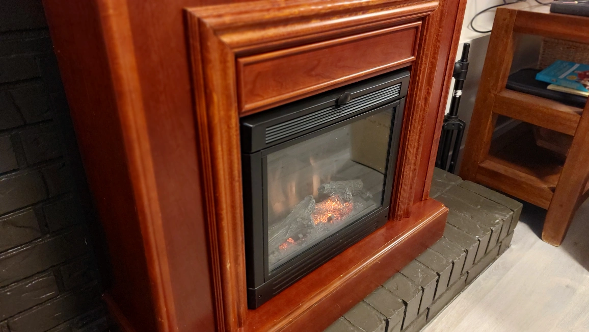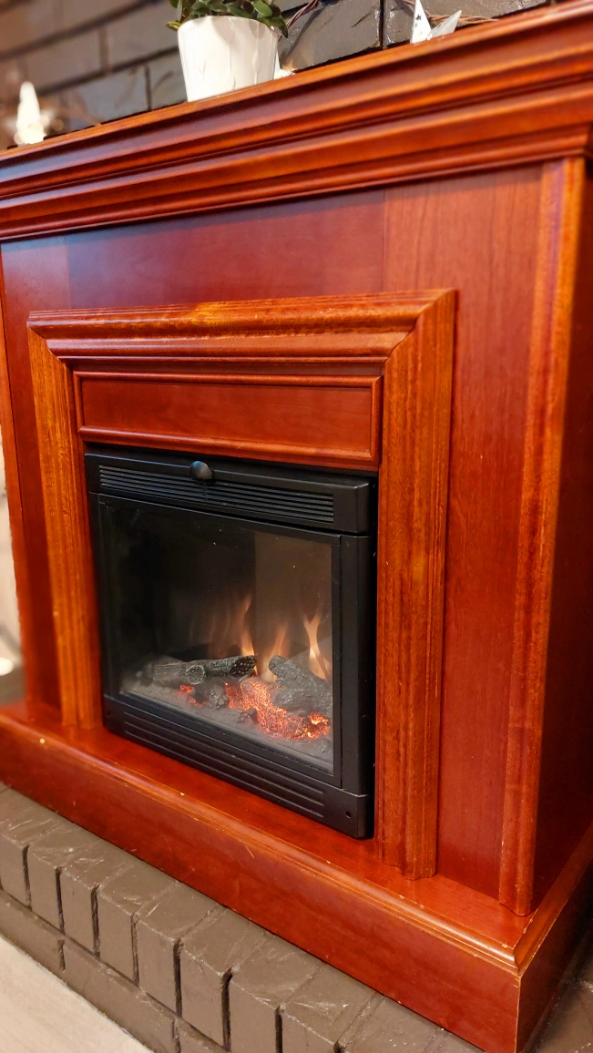 As pictured, electric fireplace and mantle. We're the 2nd owner and it just doesn't go in our new place.