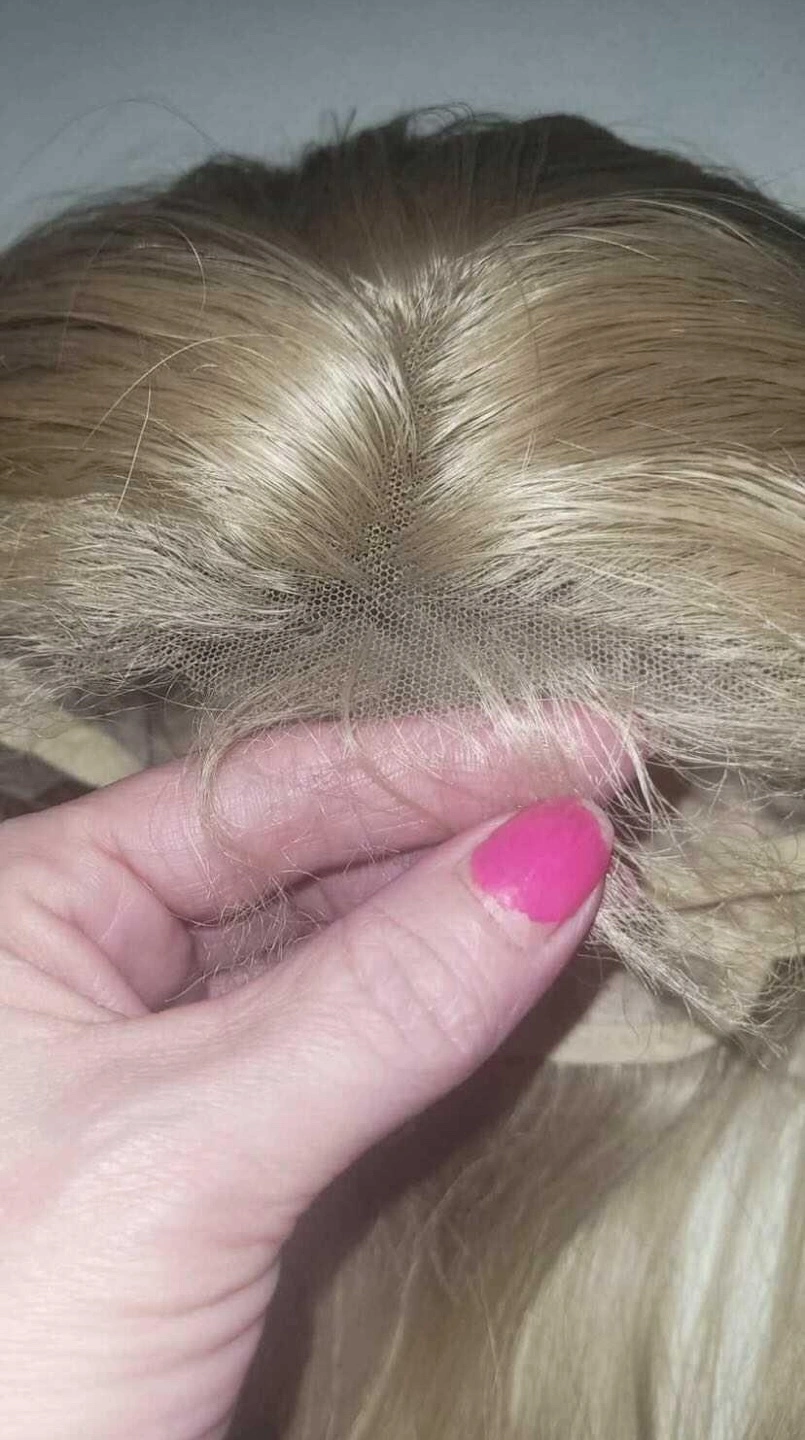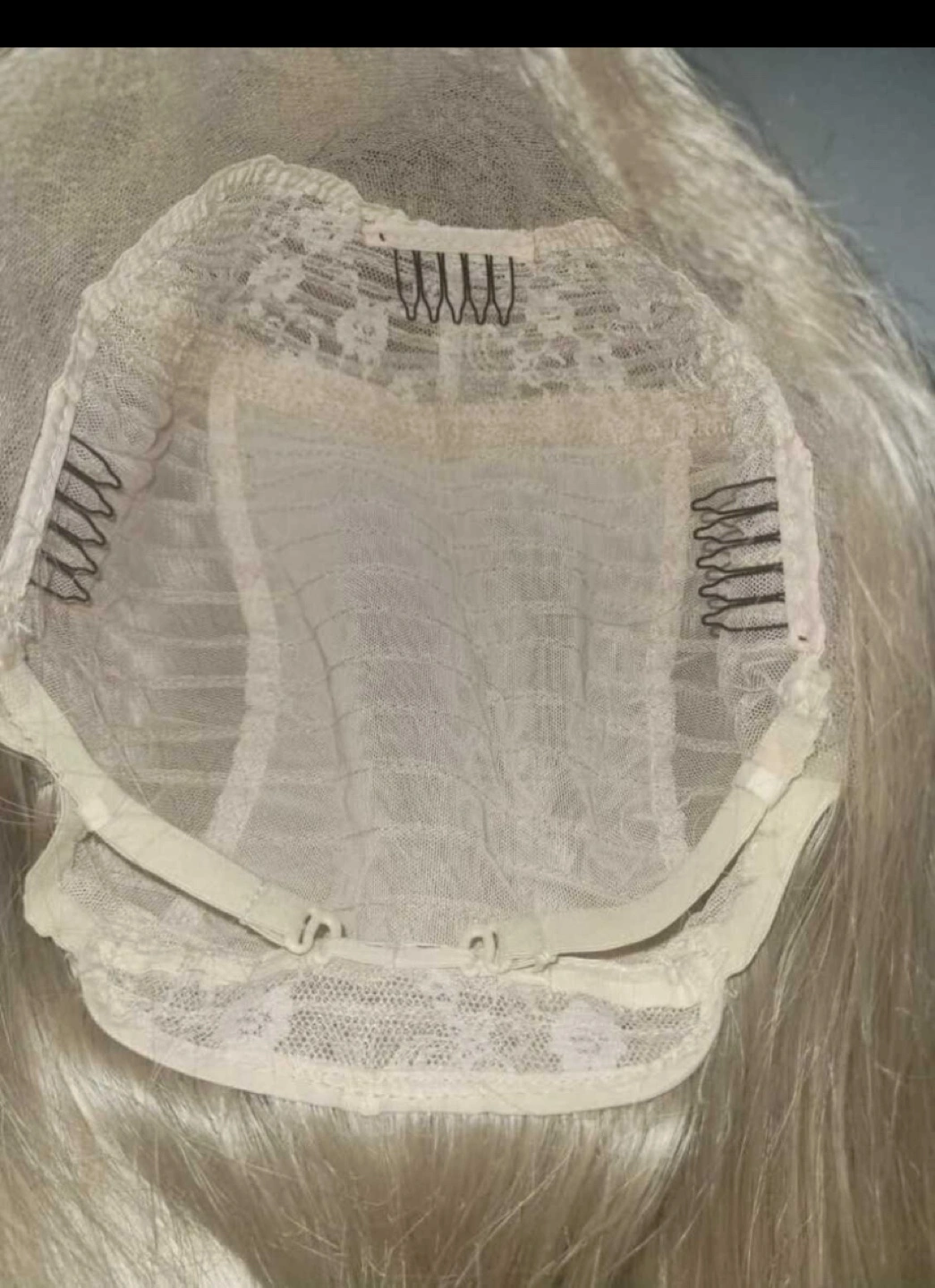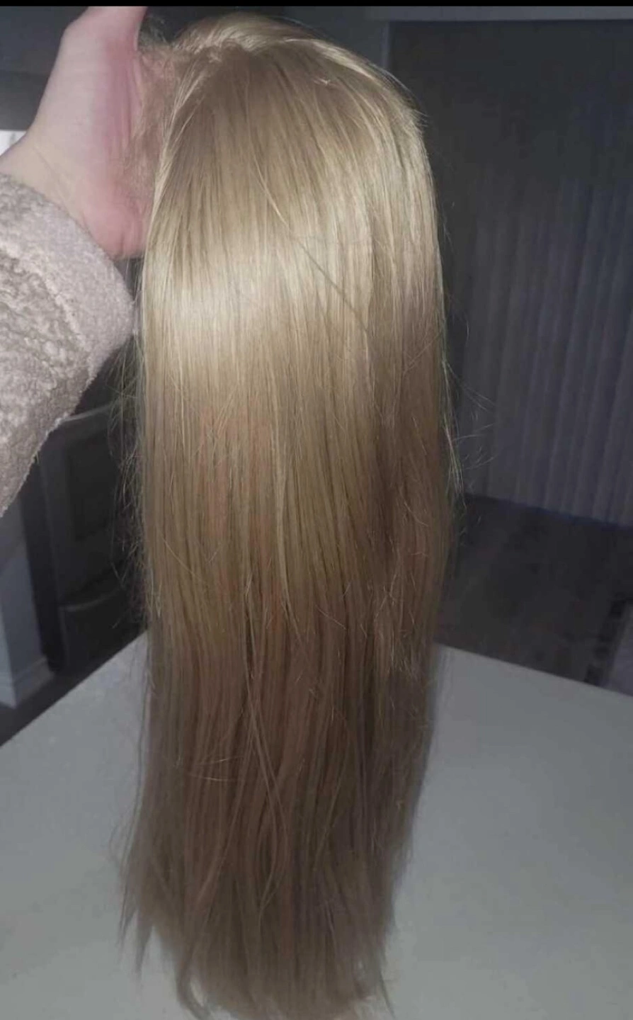 Long, straight, blonde lace front wig the lace has been cut but never installed Looks natural. Ready to wear. Can curl or dye
