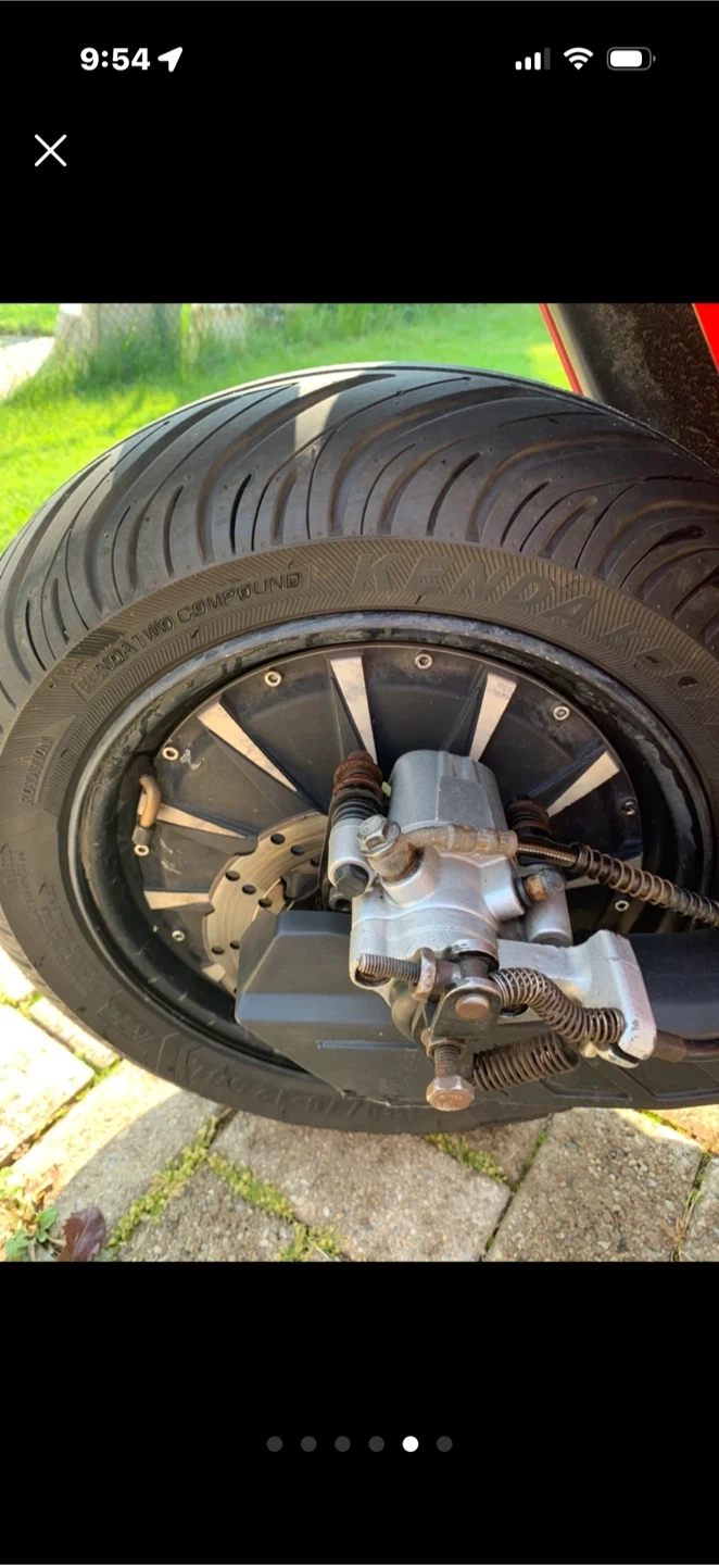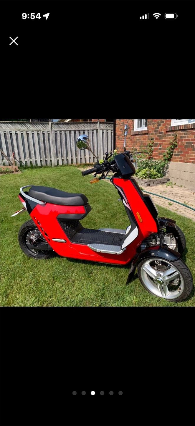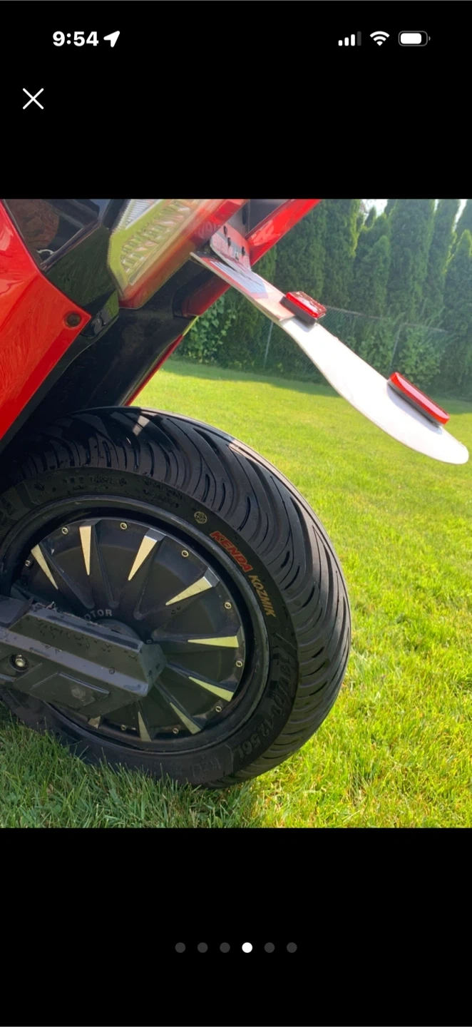 This is a red three-wheeled electric scooter. It's a unique way to get around town! Big battery 70v/ 42hp can let you ride up 60 km with one single charge. Really fun and fast to drive. Really good for doing Uber eats, original price was 7.499,00 and is unique 😉