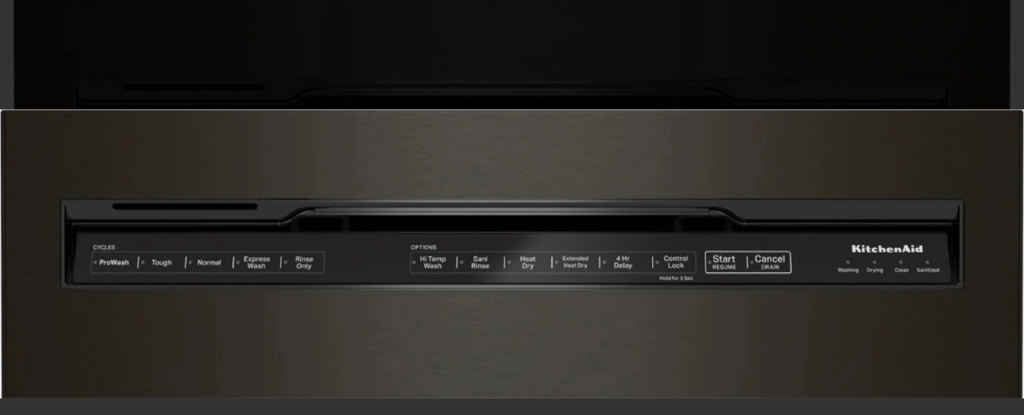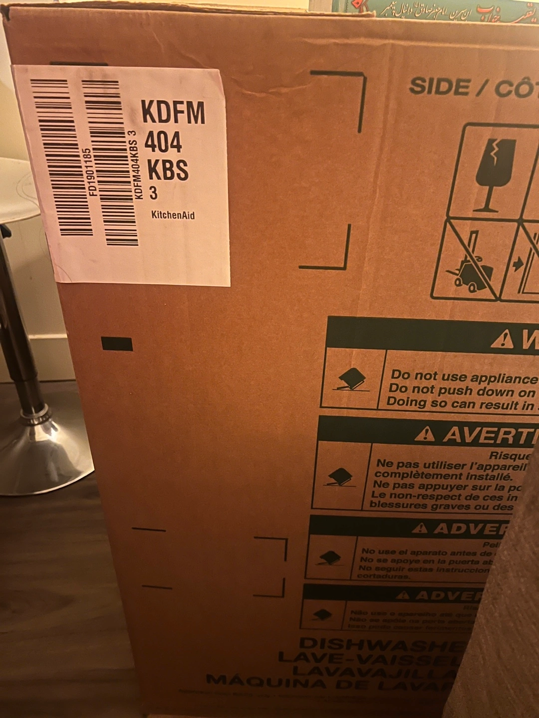 Black dishwasher in Original box KitchenAid dishwasher. Includes all original packaging materials.