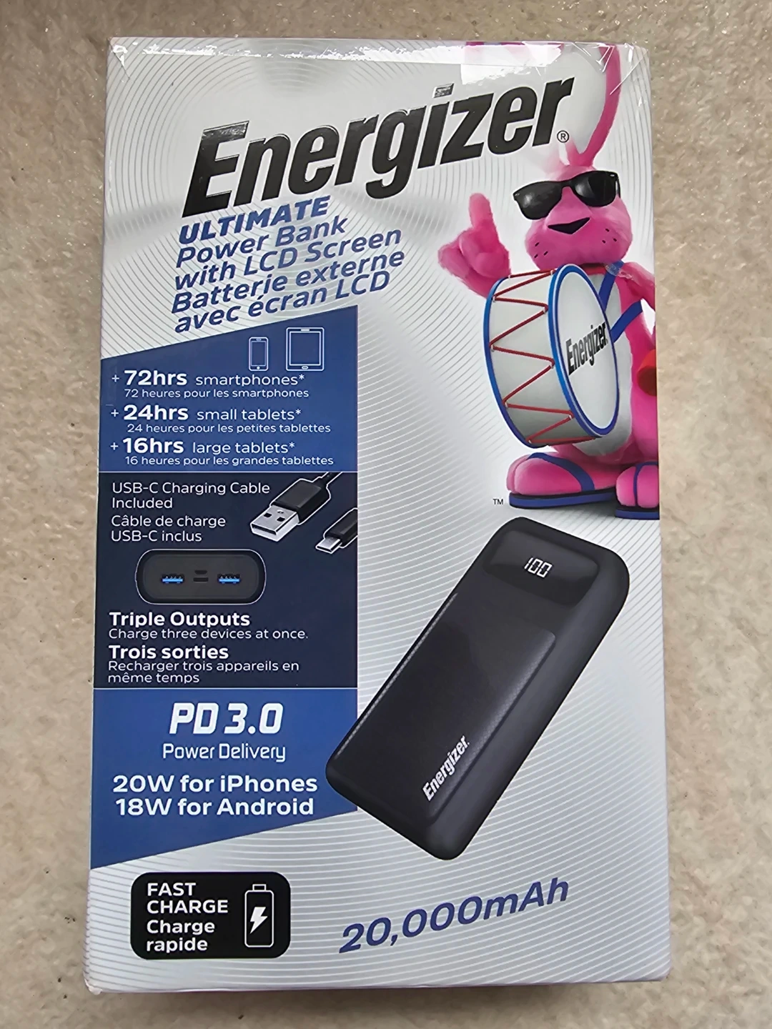 Selling a brand new Energizer Ultimate Power Bank with LCD screen! It has a 20000mAh capacity and can charge three devices at once.
