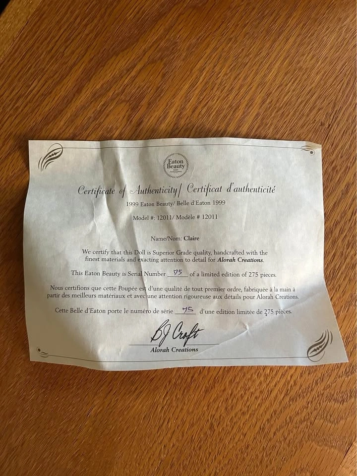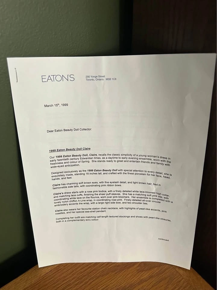 1999 Eaton’s Beauty Doll “Claire”