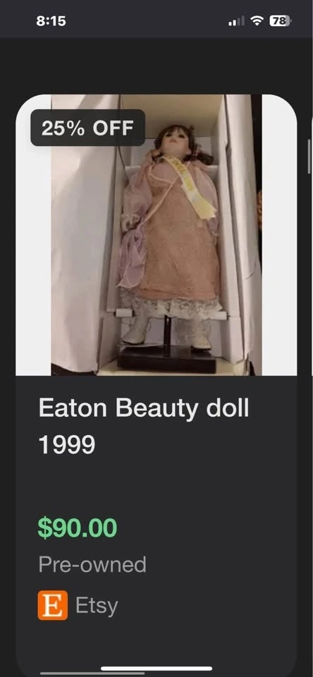 Vintage Eaton’s Beauty Porcelain Doll. Comes with original paperwork and box. Pick up in Redwater, meet in Gibbons, Fort. Sask, Sherwood Park, South / Central Edmonton.