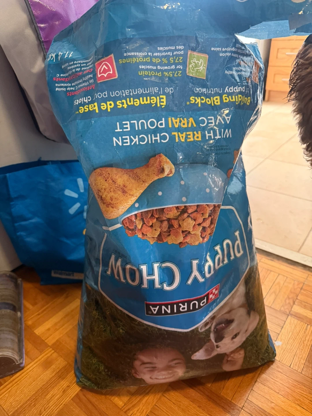 Purina Puppy Chow dry dog food features real chicken as the first ingredient. It's made with high protein for growing puppies. This dog food supports healthy development for your young dog.