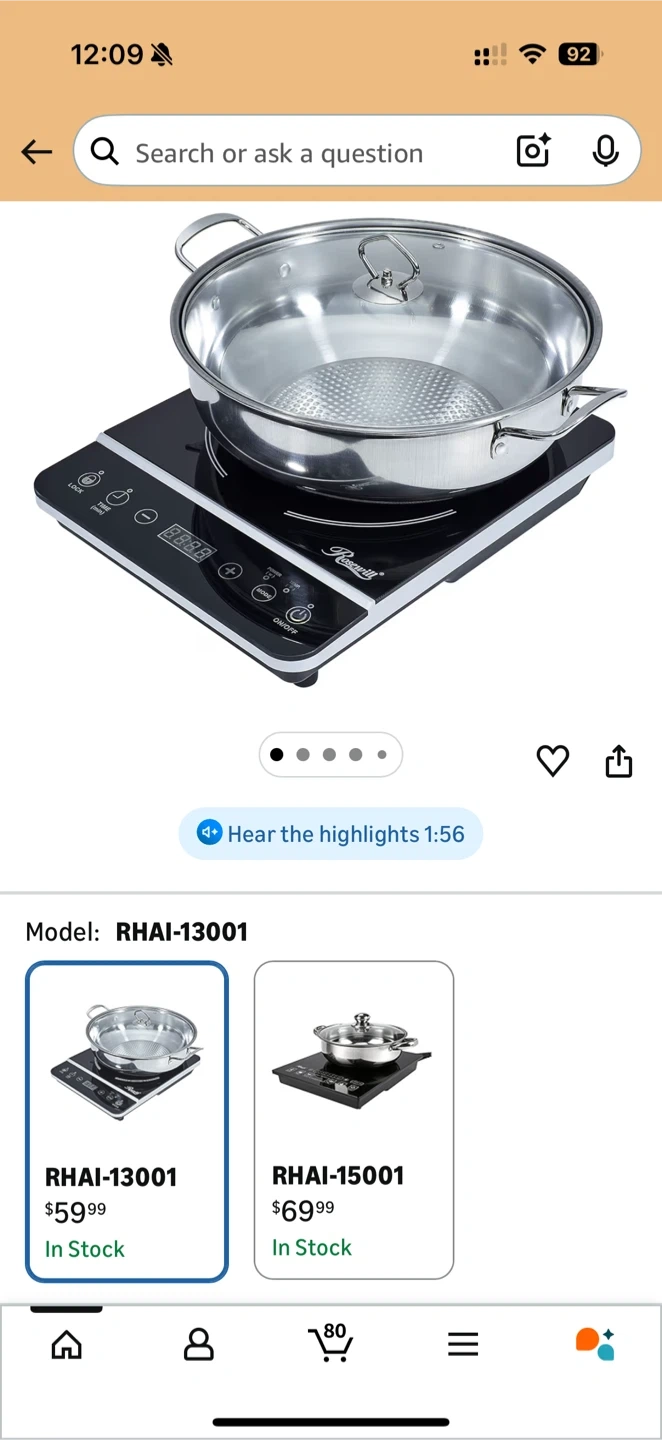 This is a Rosewill induction cooker with a stainless steel pot and glass lid. It features digital controls for time and temperature. Works great for quick meals!