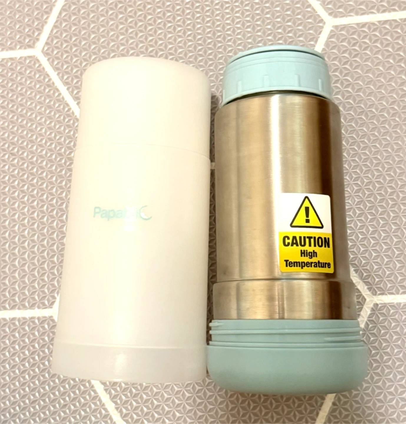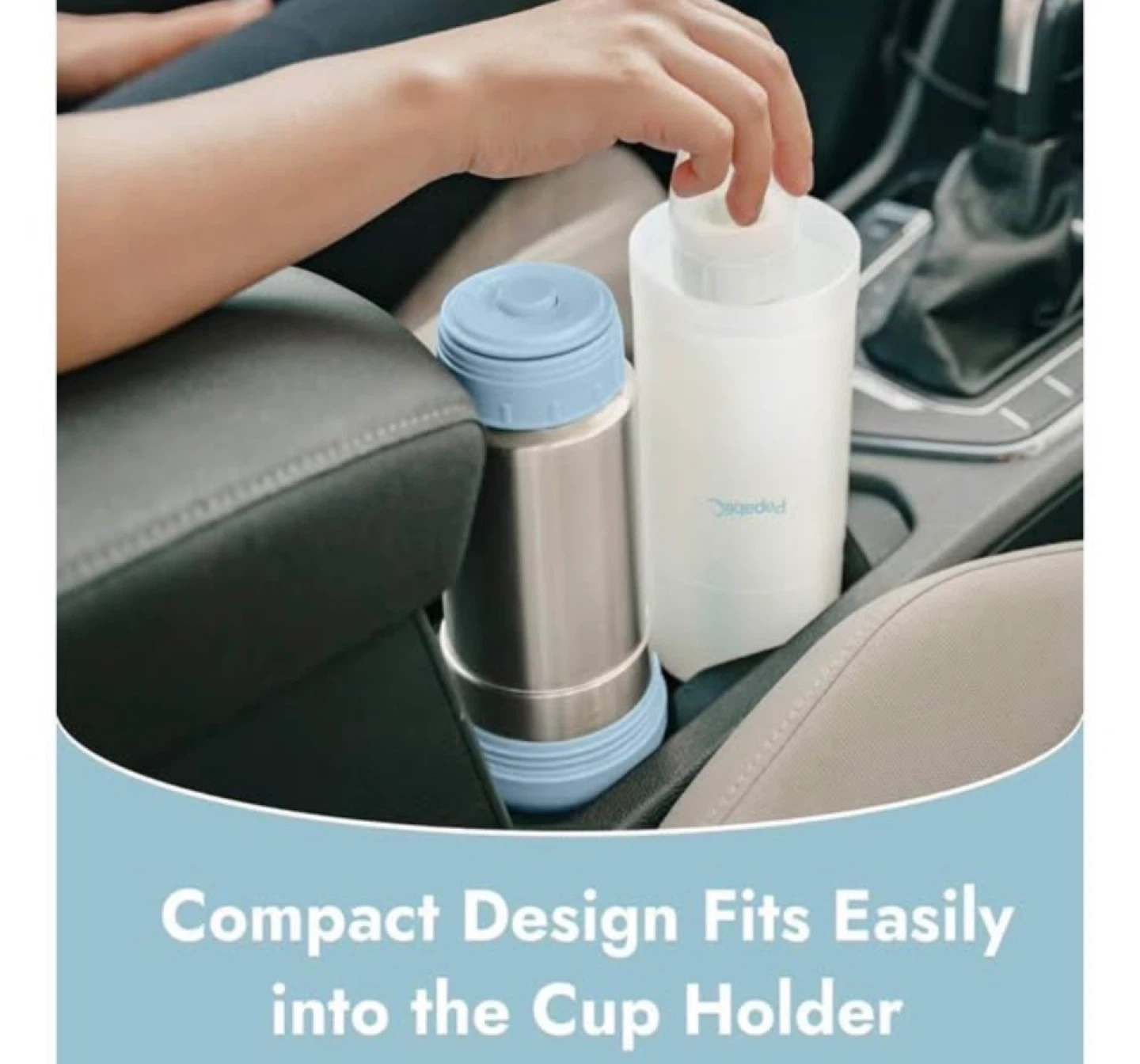 It's made of stainless steel (Free of chemicals and safe for your baby) and has a compact design that fits easily into a cup holder.
