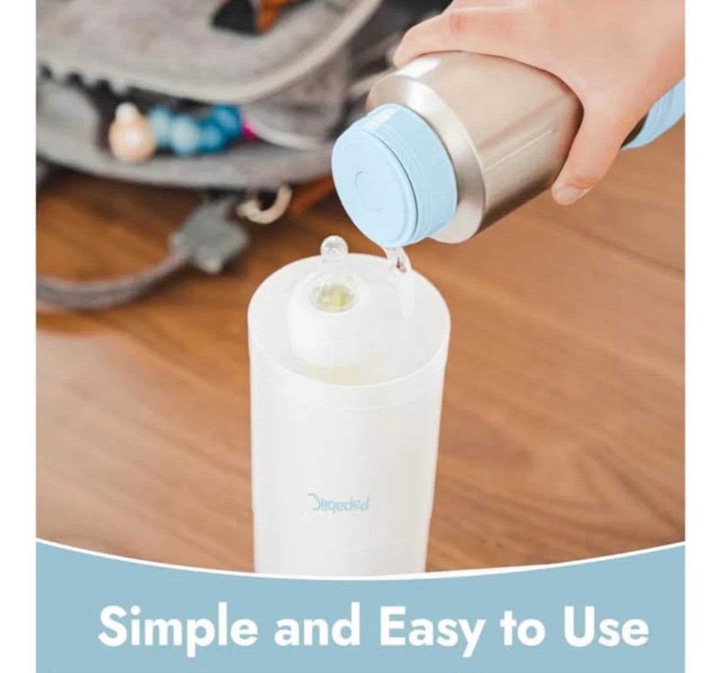 This insulated bottle warmer allows you to warm a baby bottle anywhere.