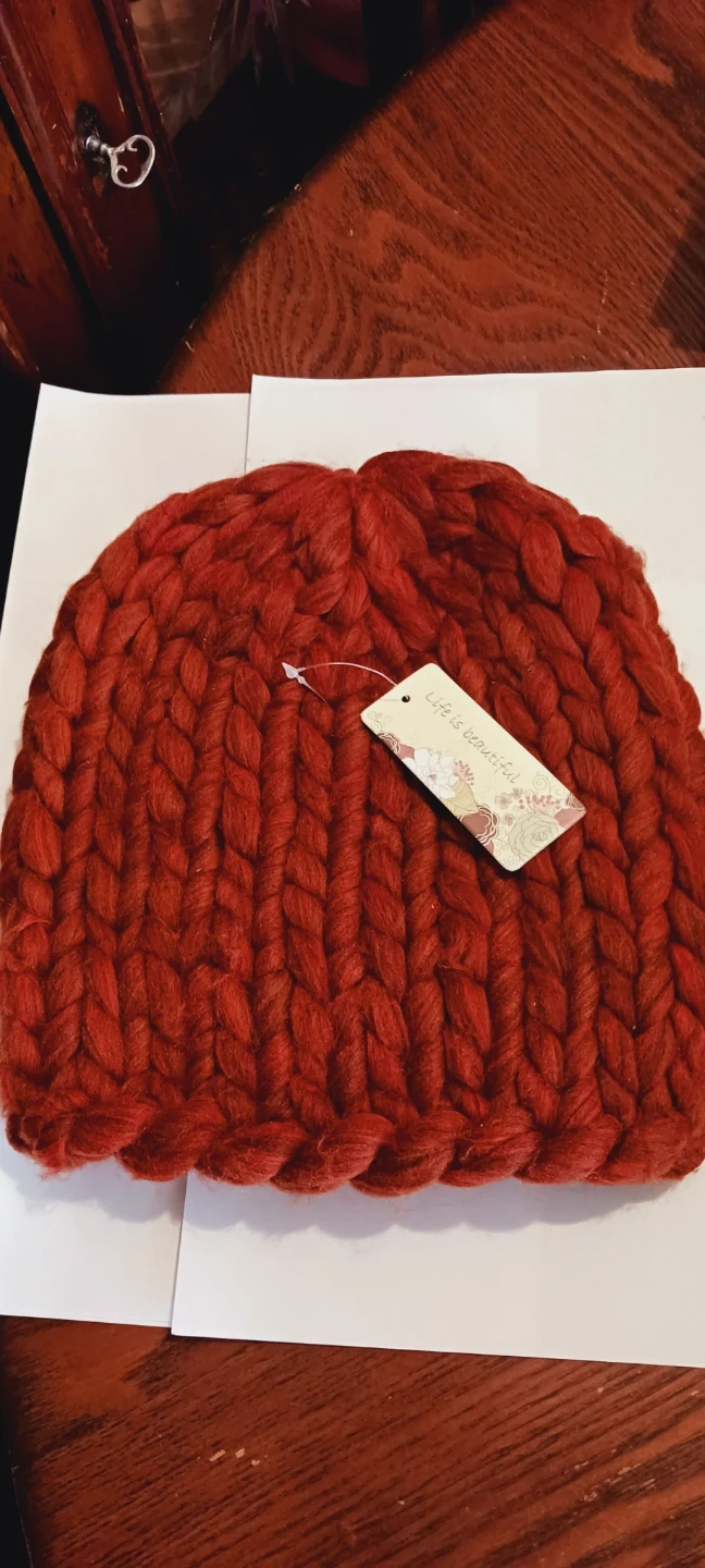 New !!! This is a chunky knit beanie hat in a warm rust color. It's made from a soft, thick yarn. The hat is designed for warmth and style during colder months. NEW !!! New with price tag. ALL MY PRICES ARE NEGOTIABLE !!