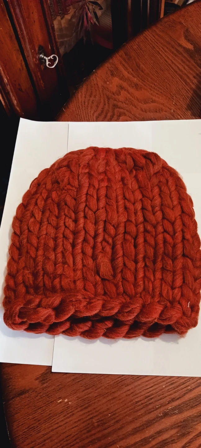 New !!! This is a chunky knit beanie hat in a warm rust color. It's made from a soft, thick yarn. The hat is designed for warmth and style during colder months. NEW !!! New with price tag. ALL MY PRICES ARE NEGOTIABLE !!