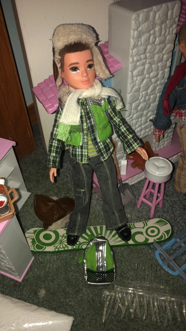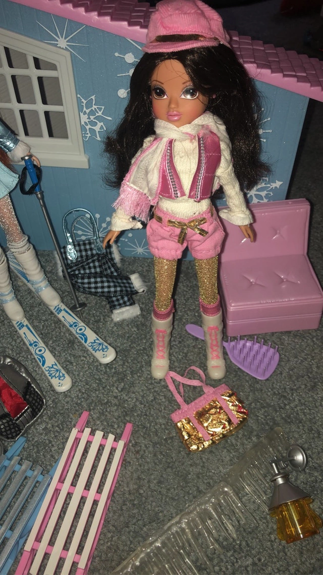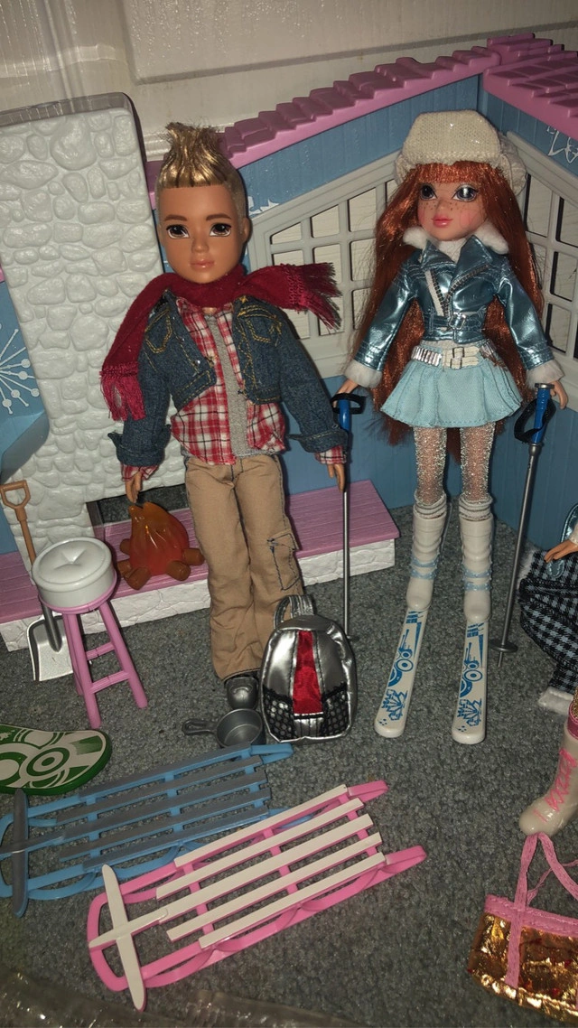 Moxie girlz magic snow cabin comes with two packets of magic snow that you mix with water to turn into fake snow. Has a snowboard and skis that come off and can fit into any of the dolls feet. You can even make it snow by loading the chimney with the special snow powder (shown in photo) to send it into the air. They don’t make these dolls anymore so they go for $100 or over that just for one of the girl dolls and I can sell dolls separately. Instructions included. $170 for all I also have an unopened Moxie girlz remote control skating rink with Lexa doll if interested.
