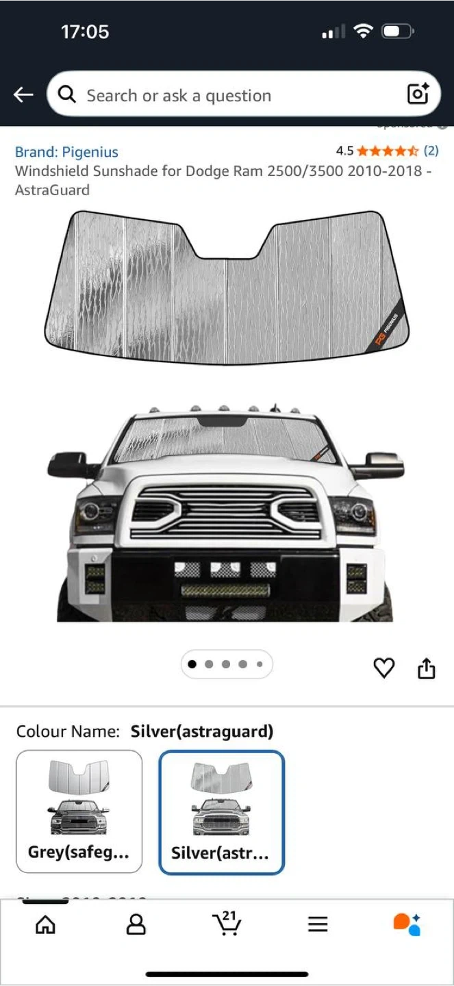 Windshield Sunshade for Dodge Ram 2500 / 3500 (2010β2018) βοΈπ