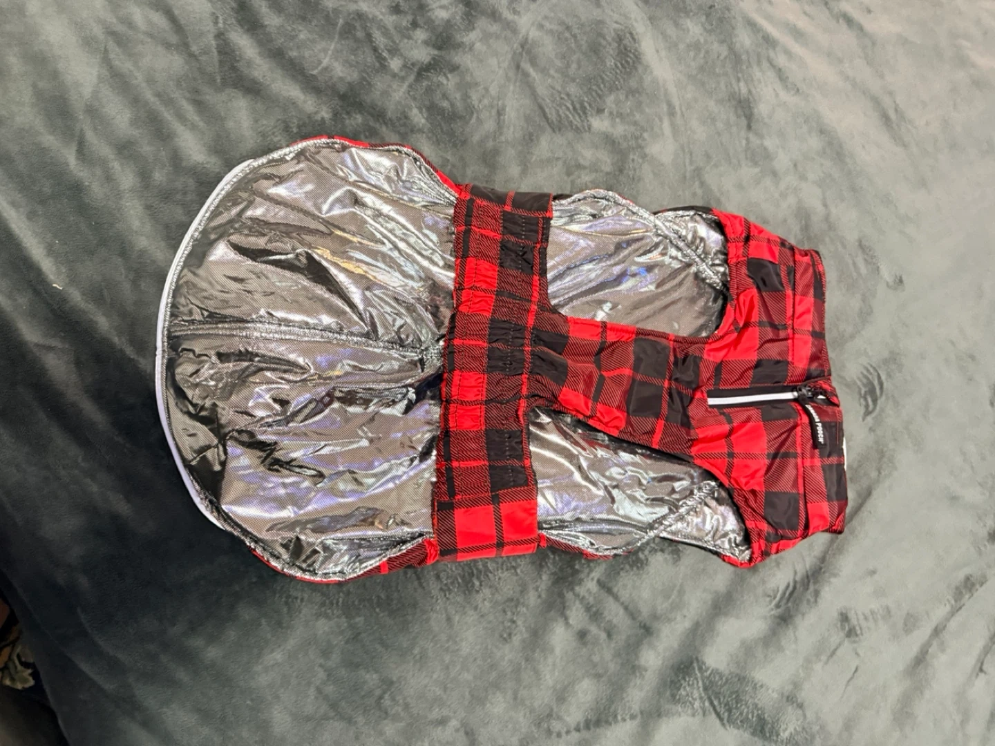 This Canada Pooch dog jacket features a classic red and black plaid design. It has a zip closure and adjustable straps for a comfortable fit. It's insulated for warmth on chilly days!