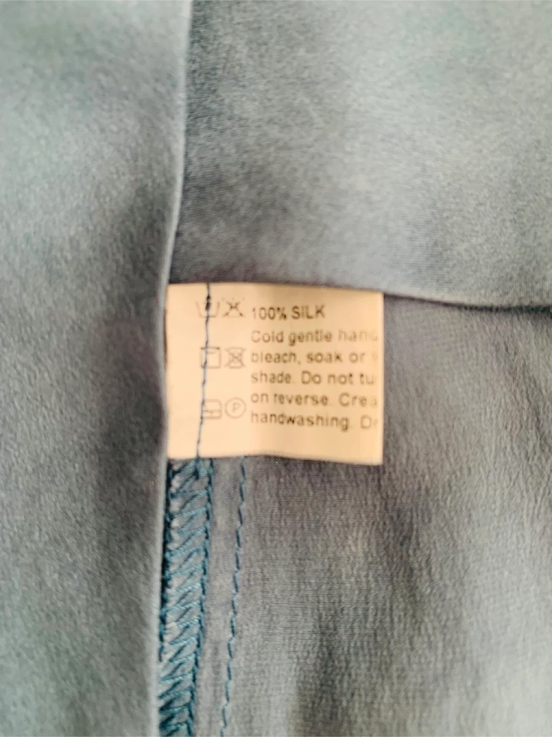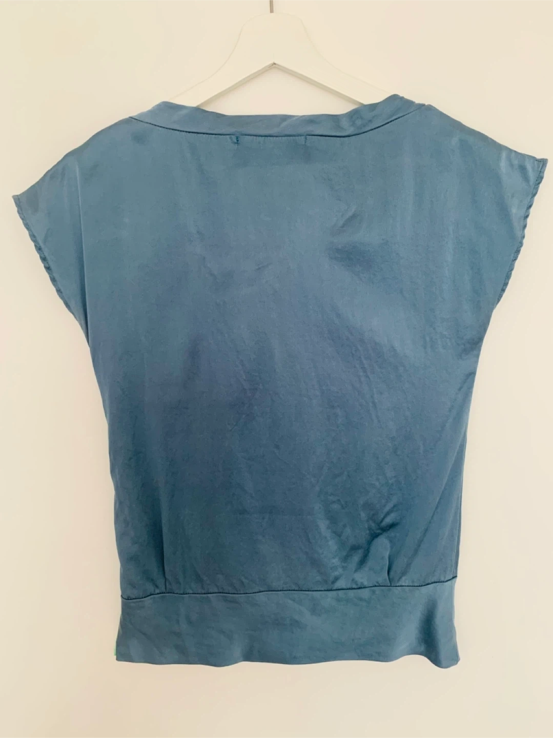 This Kate Sylvester top is made from 100% silk. It features an asymmetric V-neck with a tie detail. Size is small.