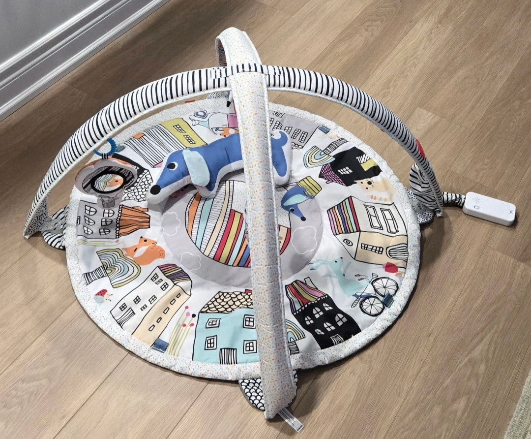 Fisher-Price Deluxe Bouncer and Play Gym set for babies. Includes a comfy bouncer with a toy bar and a round play mat with soft arches and hanging toys. Perfect for tummy time and playtime! Take both for $25.