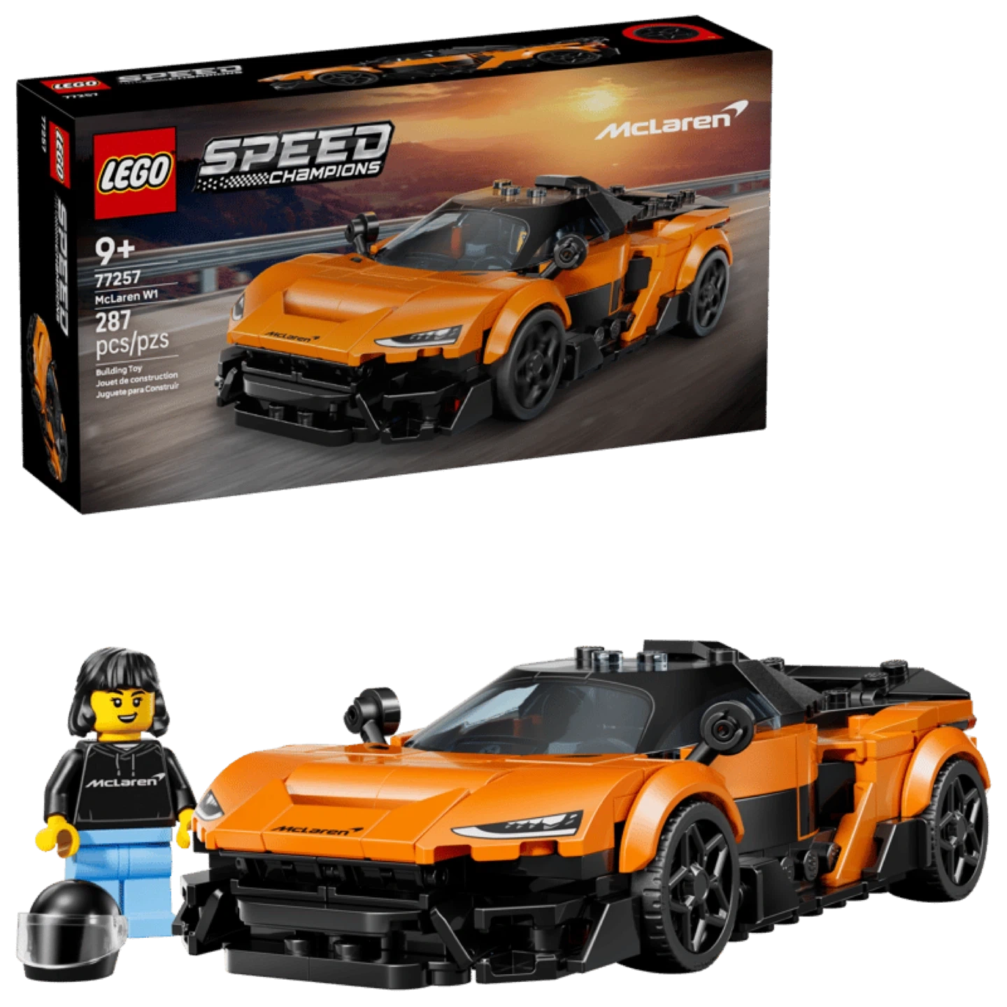 LEGO Speed Champions McLaren W1 building set with 287 pieces. Includes a minifigure and helmet. Comes in original box.