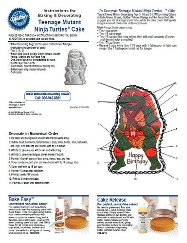 Bring some 80s nostalgia to your next birthday celebration with this vintage Wilton Teenage Mutant Ninja Turtles cake pan, featuring Michelangelo from the classic TMNT series. This aluminum character pan was produced in 1989 during the height of the Ninja Turtles craze and is a fun collectible for both bakers and fans of the franchise. Perfect for themed birthday cakes, collectors of vintage Wilton bakeware, or TMNT enthusiasts. Details: Brand: Wilton, Character: Michelangelo (Teenage Mutant Ninja Turtles), Year: 1989, Material: Aluminum, Type: Character cake pan. Includes: Original decorating instruction sheets (see photos). Condition: Pre-owned vintage condition. The pan shows light signs of use such as minor surface scratches and normal wear from baking and storage. No cracks or structural damage. Please review all photos carefully as they form part of the description. Great for: Teenage Mutant Ninja Turtles themed birthday cakes, Vintage Wilton cake pan collectors, 1980s nostalgia and memorabilia, Baking and cake decorating enthusiasts. This TMNT cake pan is a retired Wilton design and part of their popular collectible character cake pan series. Let me know if you're interested!