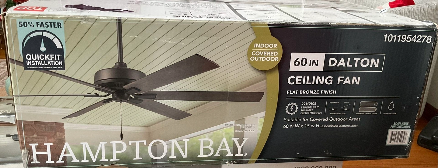 Hampton Bay Dalton 60 in. Indoor/Covered Outdoor DC Motor Flat Bronze Ceiling Fan. Feel free to message if you have any questions!