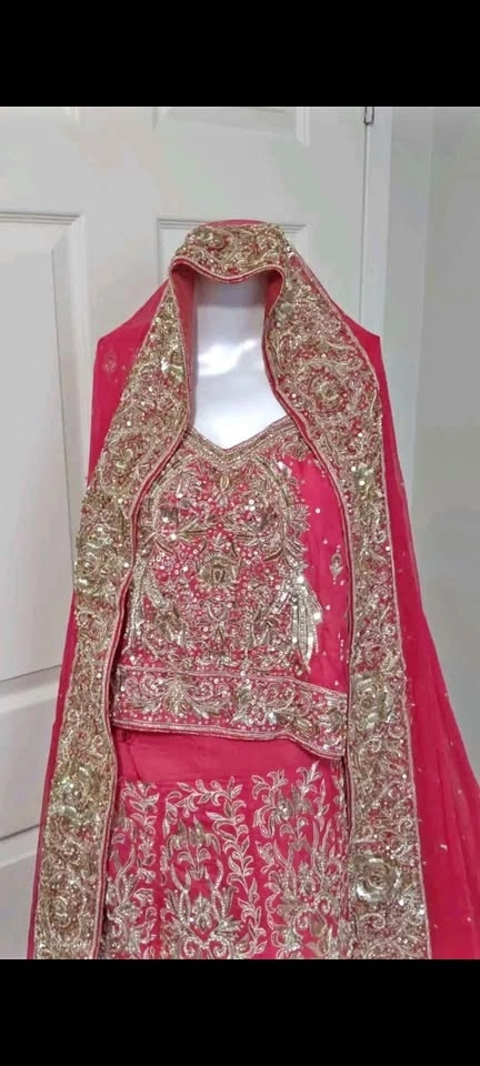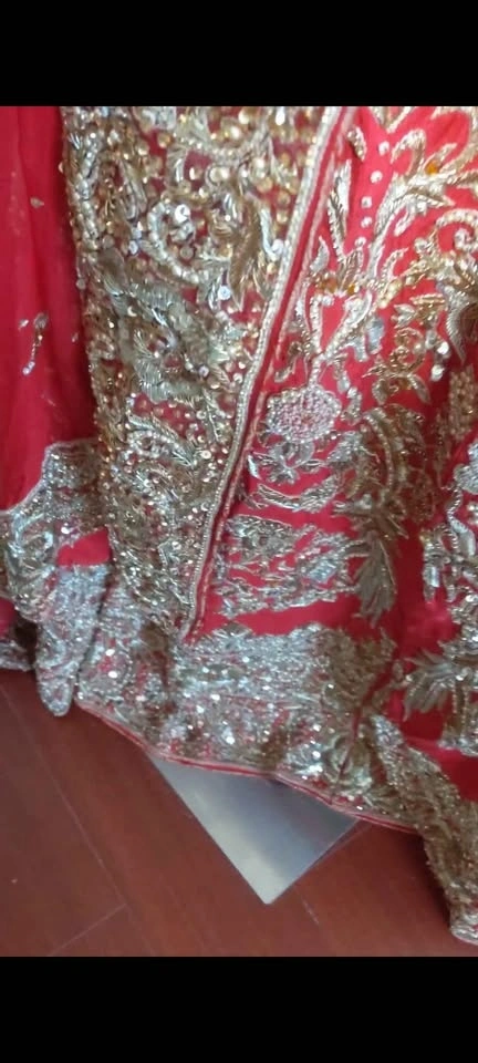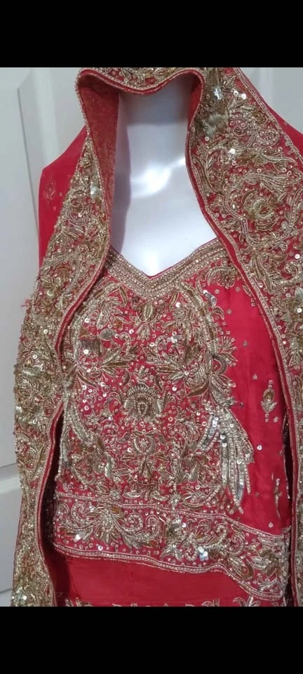 Beautiful brand new Pakistani Indian Desi red bridal shaadi lehenga fully embellished with handcrafted details including zari zardozi kora dabka stonework etc.