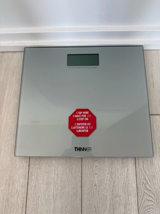 This is a Thinner digital weight scale, perfect for tracking your fitness progress with precision. This scale is in used condition and ready to help you on your wellness journey. Brand: Thinner. Type: Digital Weight Scale. Condition: Used - Good. Cash accepted.